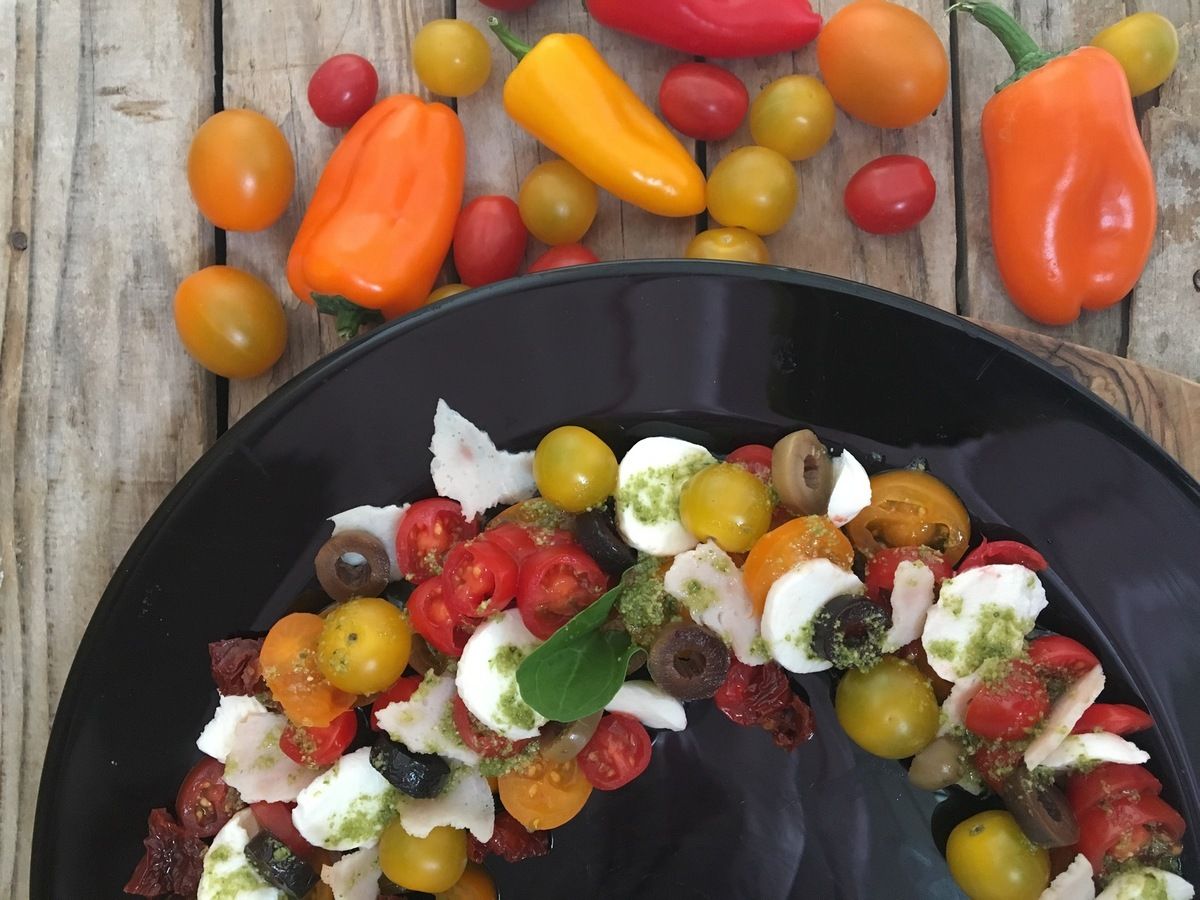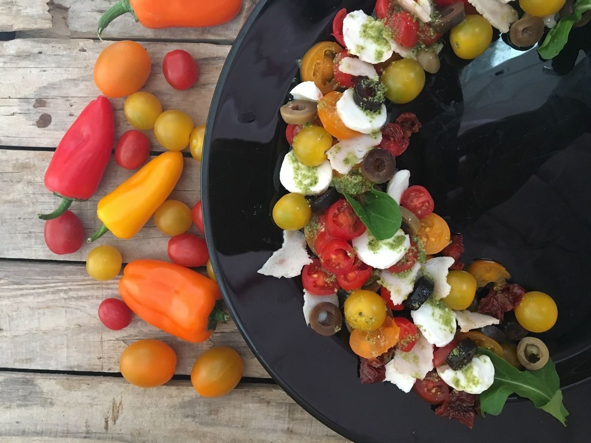 31 August 2019 Salade et soupe SALADE TOMATE MOZZARELLA TwitterSALADE TOMATE MOZZERELLA Tomates cerise au 3 couleurs Tomate séchée Jambon fumée 3 boules de mozzarella, Olive noir et vert Un peu de vinaigre balsamique pesto Un peu de huile Sel et poivre Previous Next