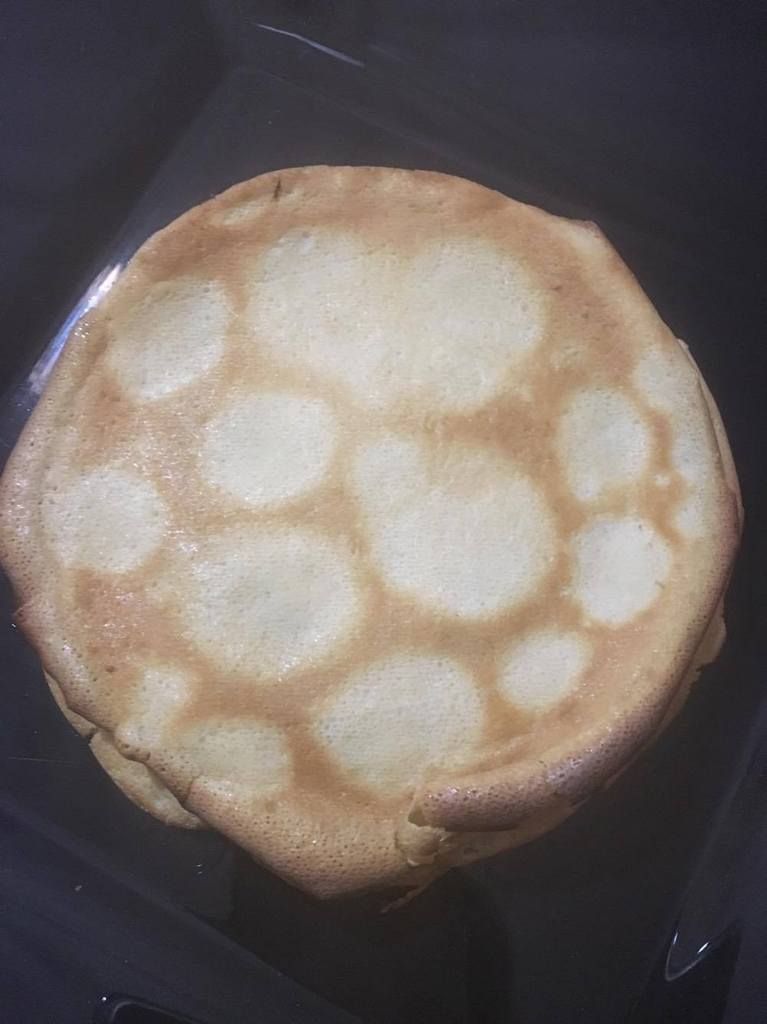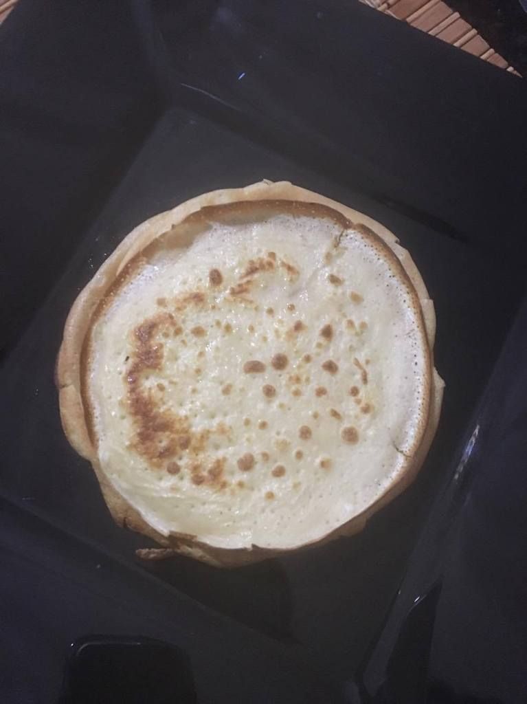 Pour finir Cuire les crêpes dans une poêle chaude graissé, Verser une petite louche de pâte dans la poêle, faire un mouvement de rotation pour répartir la pâte sur toute la surface, poser sur le feu et quand le tour de la crêpe se colore en roux clair, il est temps de la retourner. Laisser cuire environ une minute de ce côté et la crêpe est prête. Répéter jusqu'à épuisement de la pâte.