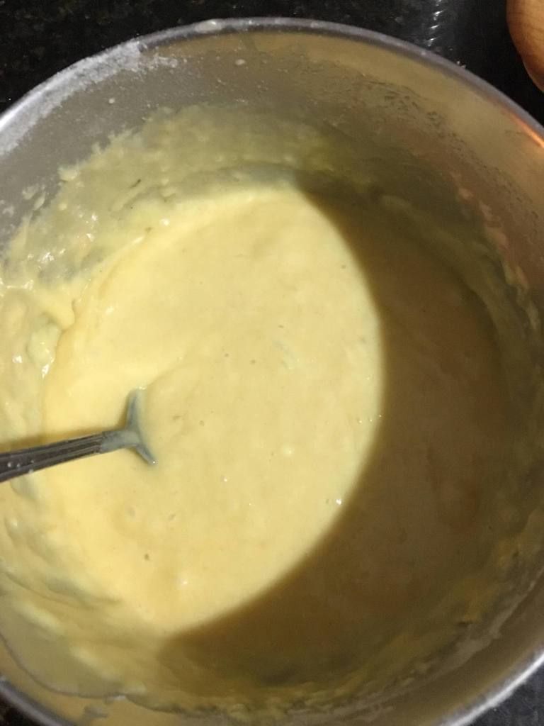 Bien mélanger juste à la main et ajouter le beurre fondu.