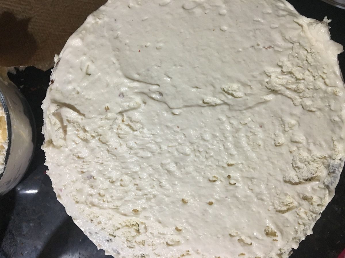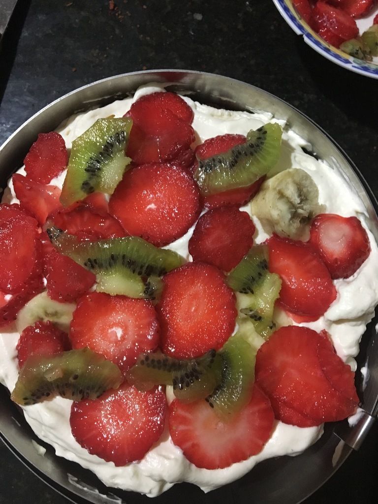 après fourrage du gâteaux à la crème et au fruit laisser reposer le gâteaux au froid avant