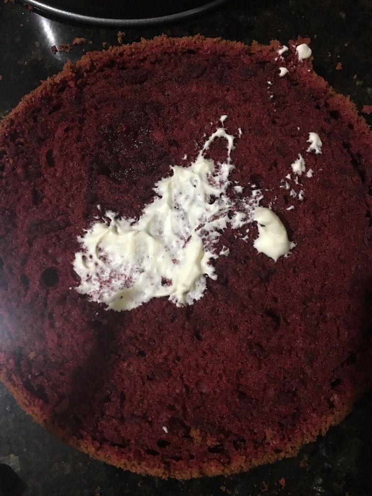 Voilà mon red velevet cake à ma façon au fruit et avec une crème plus légère . .