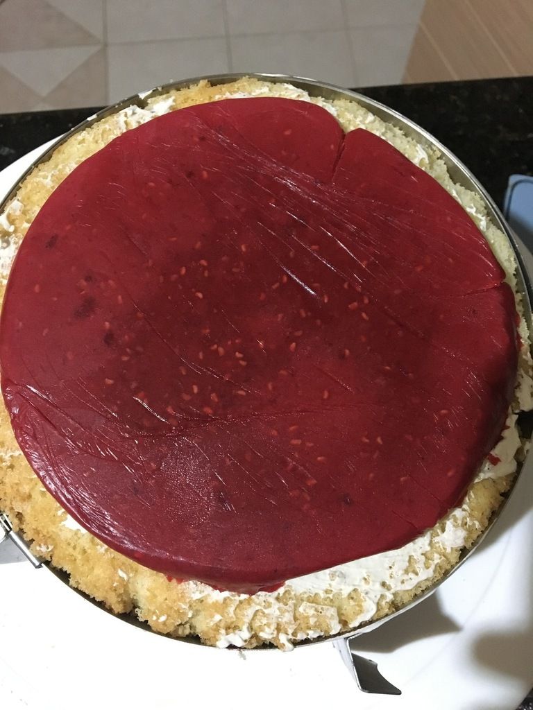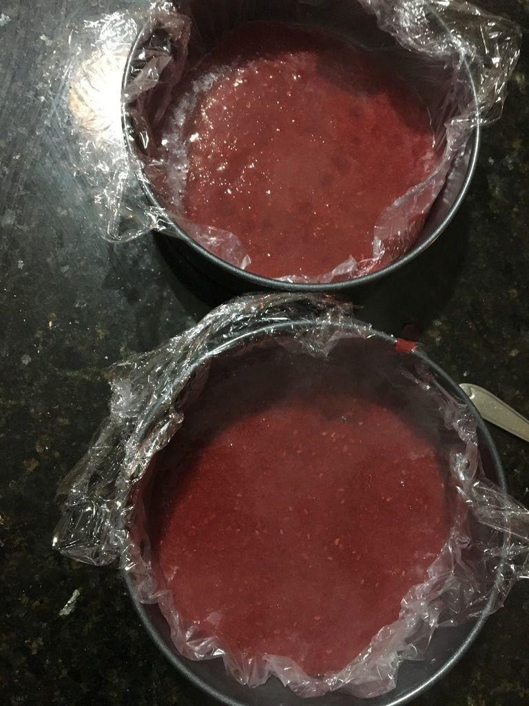 Il faut deux disques de gelée de framboises. vous pouvez la réaliser en deux fois.
