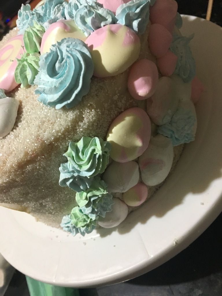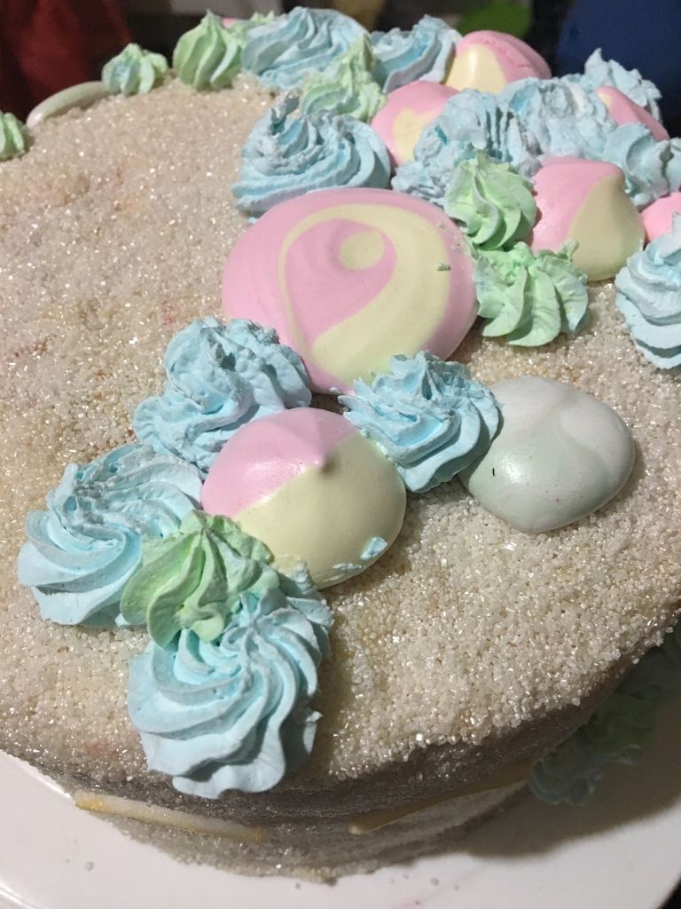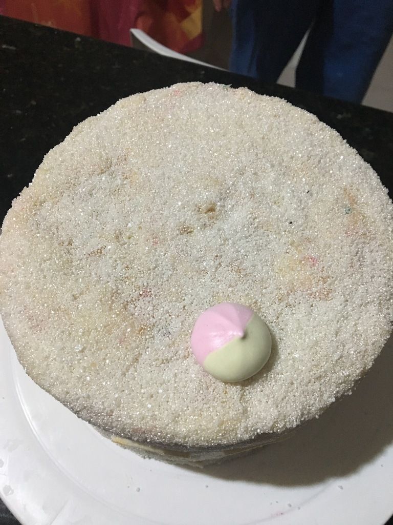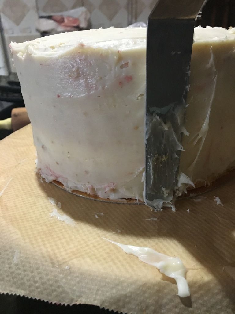 Lissez le gâteau à l'aide d'un lisseur à glaçage et décorer avec des perles ce n'est pas obligatoire et au frais pour 20 minutes au moins
