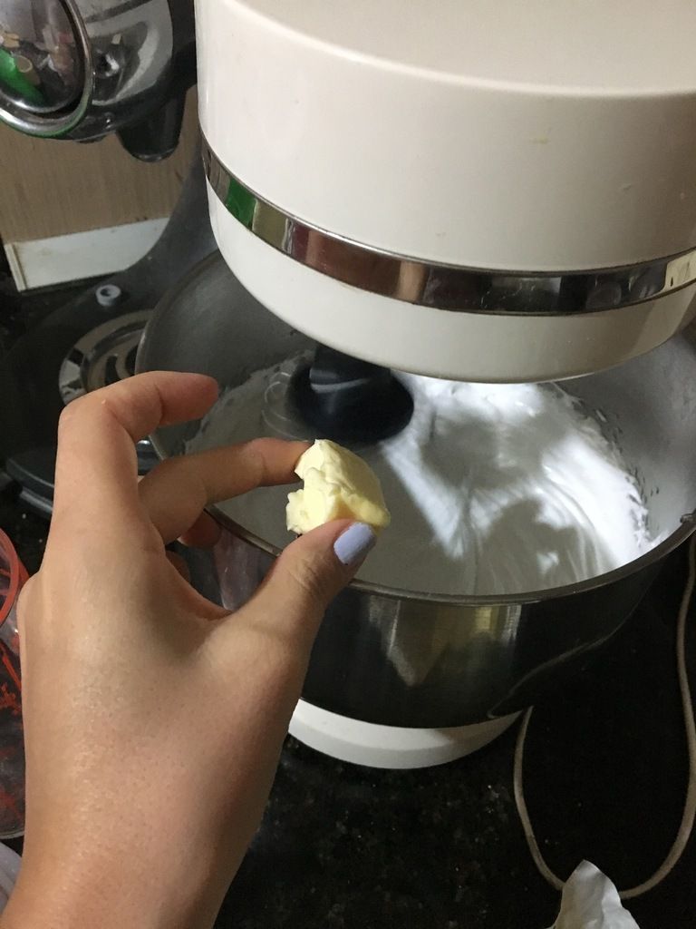 Une fois tout votre beurre incorporé, continuez de fouetter jusqu’à obtenir une crème légère et aérée.