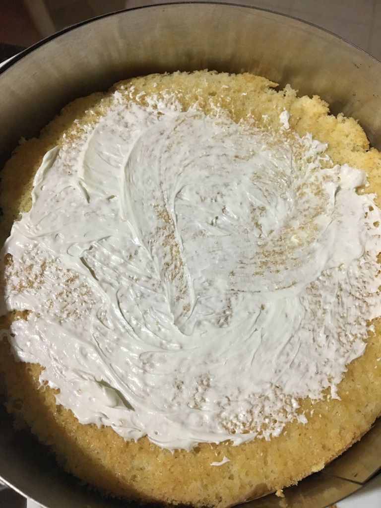 Recouvrir l'ensemble du GÂTEAUX d'une couche DE CRÈME