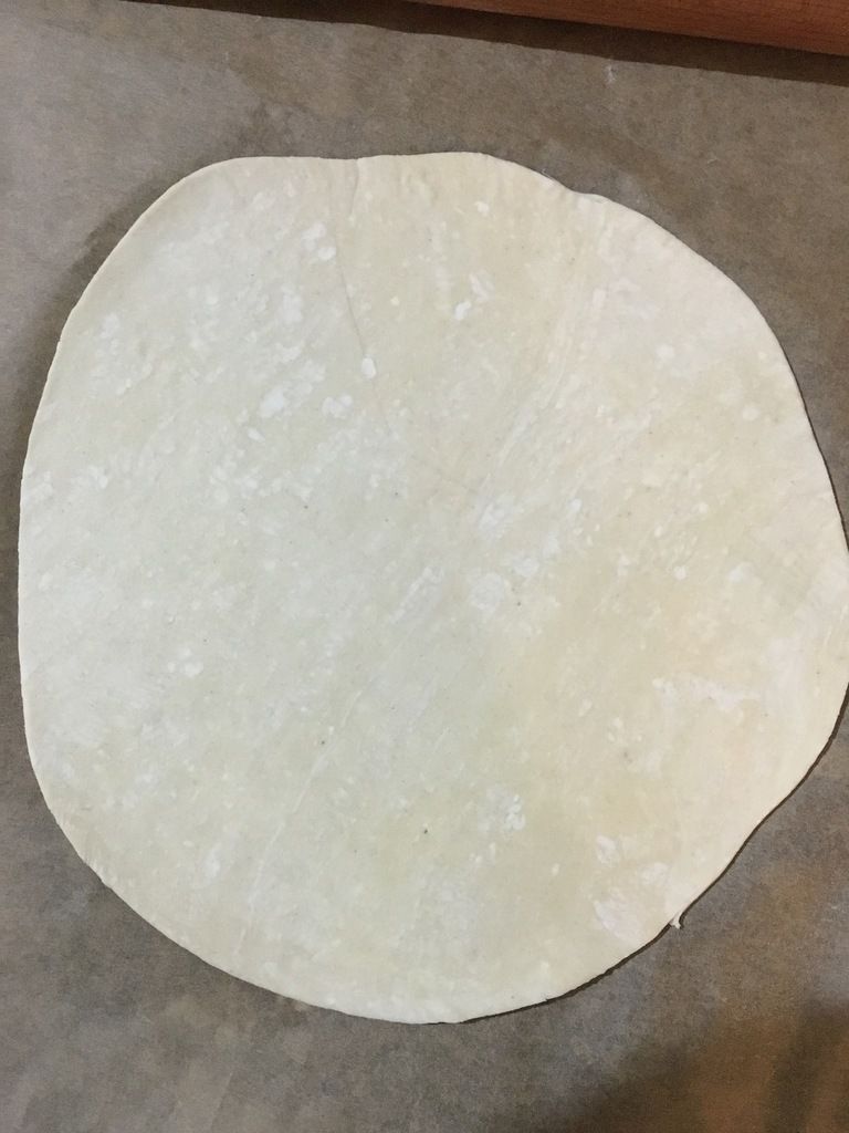 - Fleurez le plan de travail de farine puis disposez les ronds de feuilletage de 18 cm de diamètre.