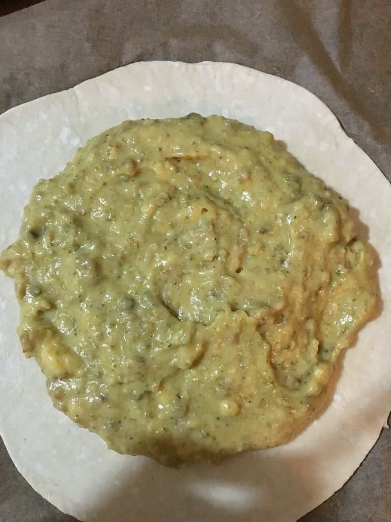 - A l’aide d’une poche à douille, en partant du centre des ronds de 18 cm de diamètre, formez une spirale de frangipane d’un cm d’épaisseur en vous arrêtant à 1 bon cm du bord (environ 270 gr de frangipane par galette).