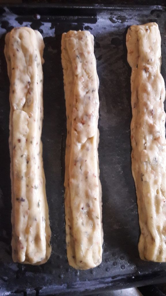 Se huiler les mains et le plan du travail pour pouvoir façonner 6 boudins de pâte et déposer ces boudins sur une plaque