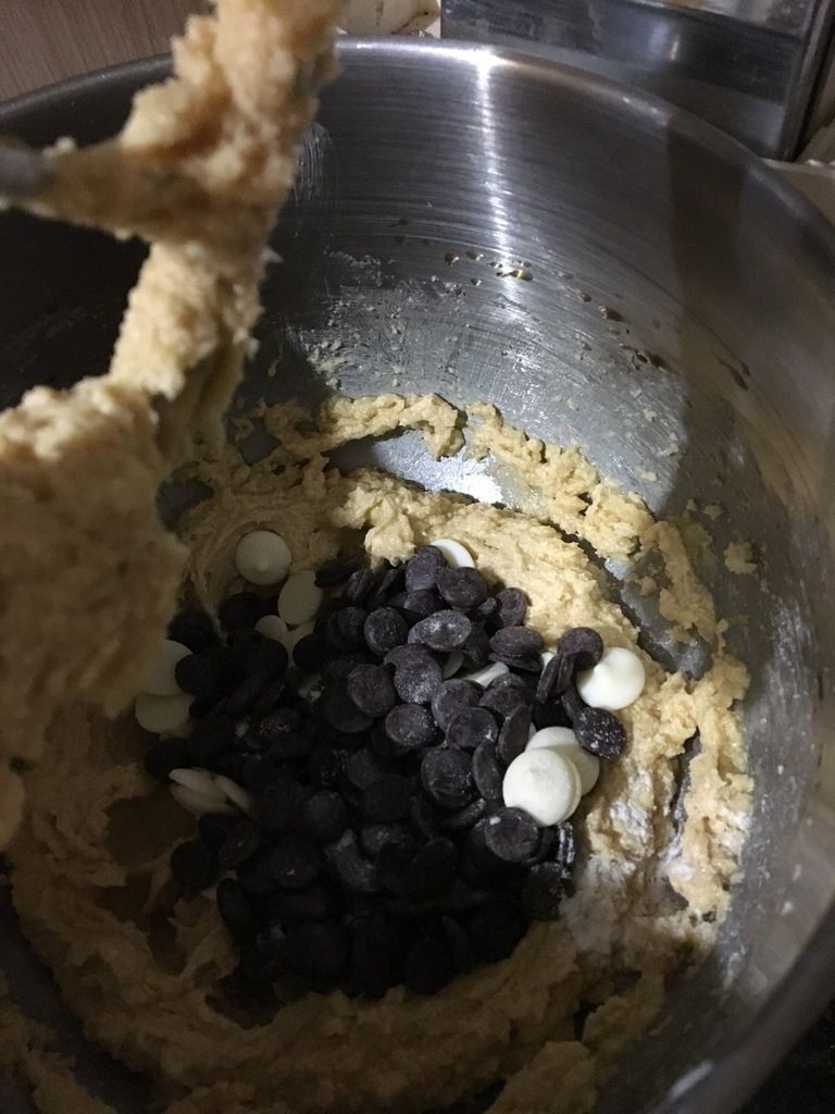 – 80g de pépites de chocolat noir et blanc