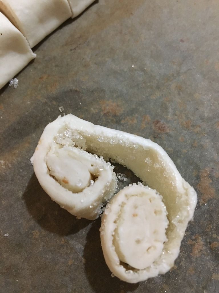 ÉTAPE 4 Saupoudrez de sucre en poudre et roulez-la dans un sens jusqu'au milieu et recommencez la même opération dans l'autre sens.
