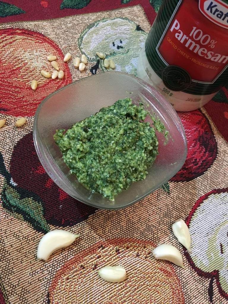 Si le pesto paraît encore trop épais à votre goût, vous pouvez ajouter de l’eau pour le diluer un peu plus.