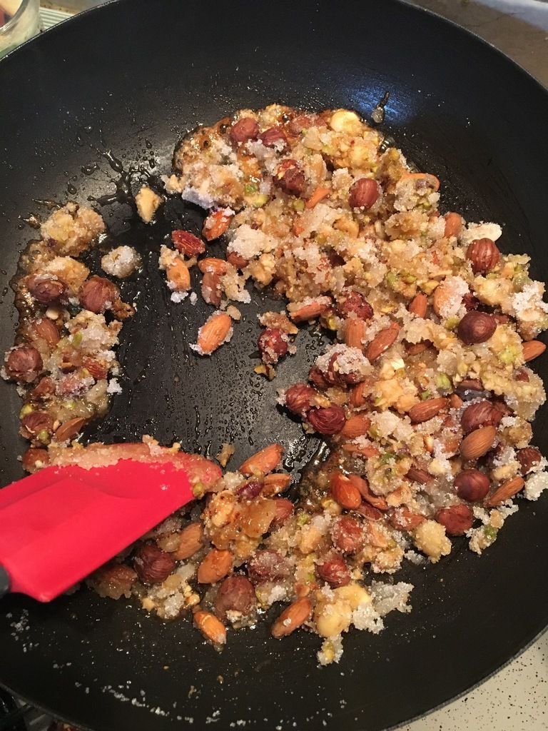 Le sucre va se transformer peu à peu en caramel, arrêter la cuisson lorsqu’il a obtenu une belle coloration brune.