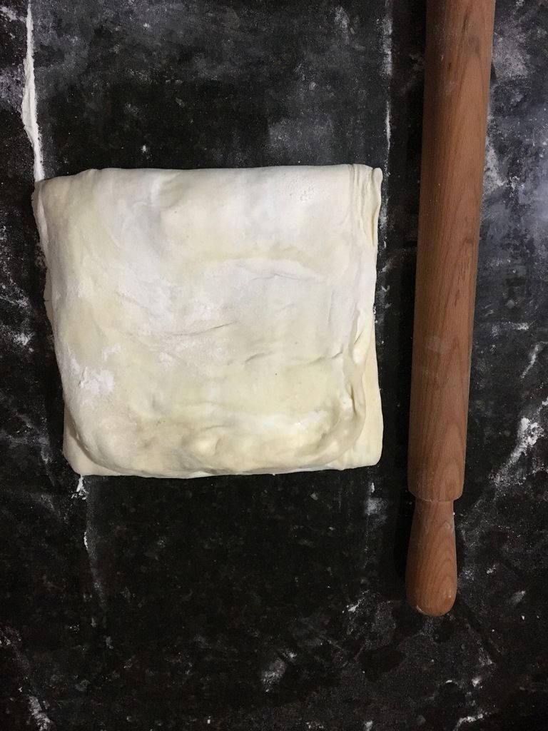 Réalisez un troisième et dernier tour, à l'identique des deux premiers, puis enveloppez la pâte avec du film alimentaire, et laissez-la reposer au réfrigérateur pendant 3 heures supplémentaires, avant utilisation et cuisson.