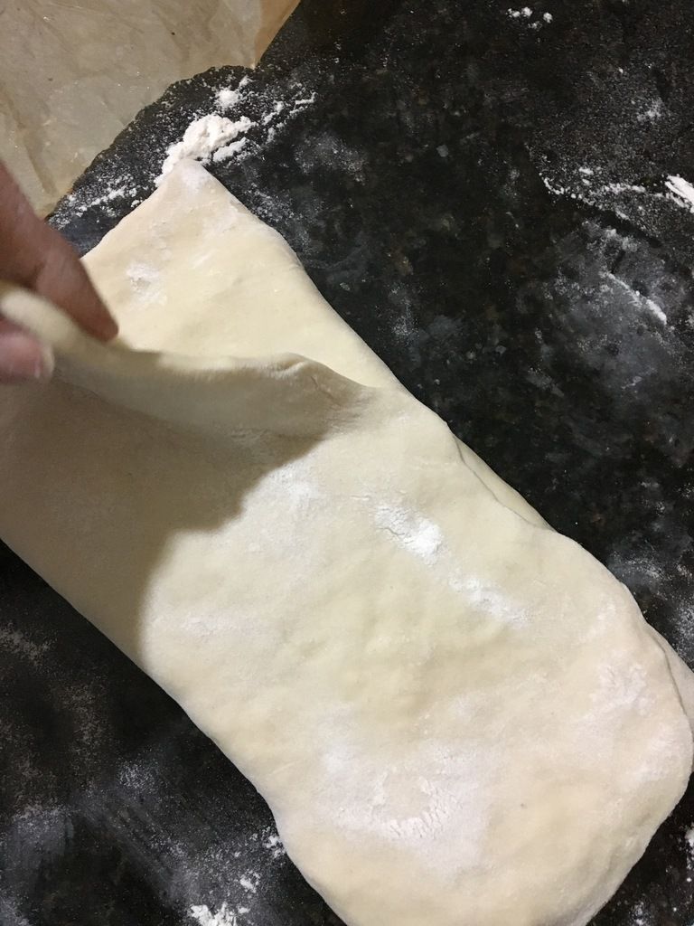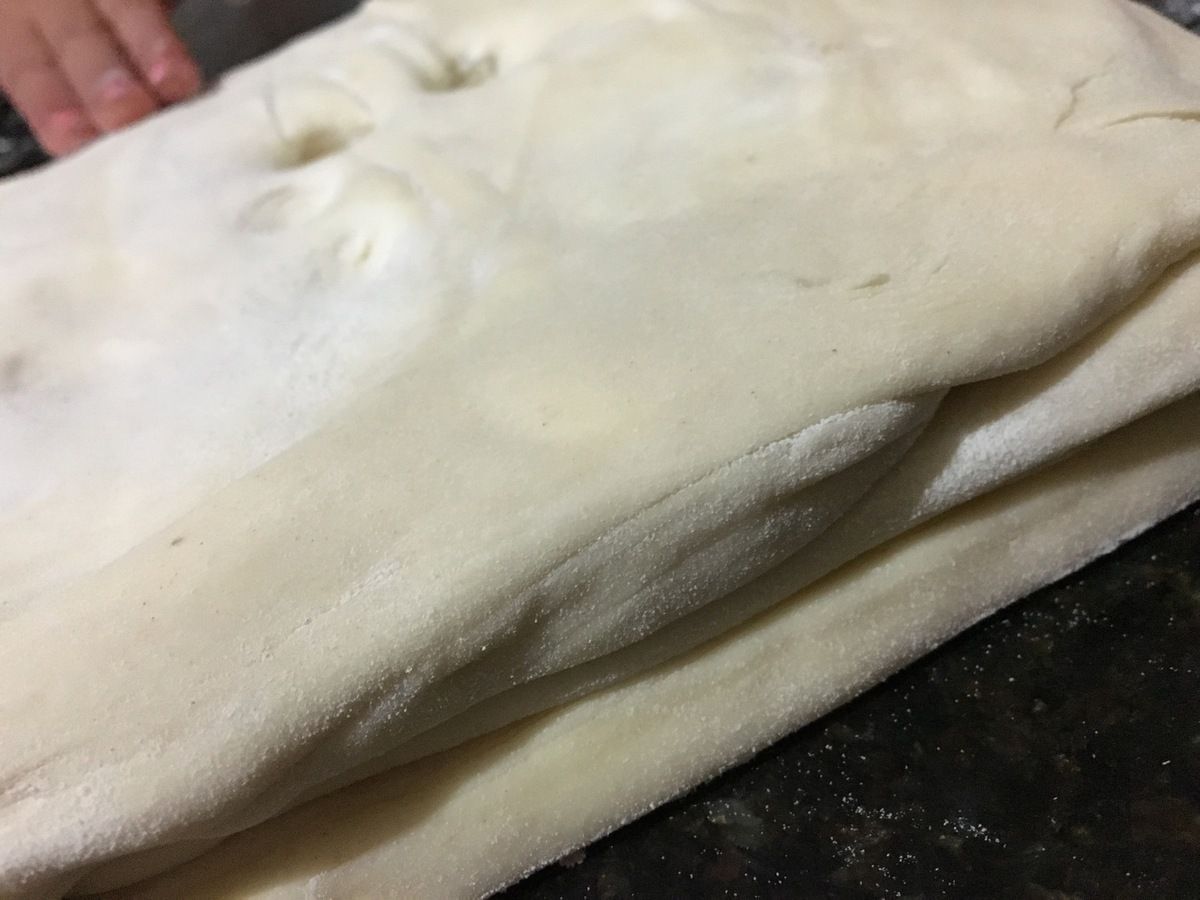 Réalisez le premier tour en superposant la pâte par tiers, à la manière d'un portefeuille.