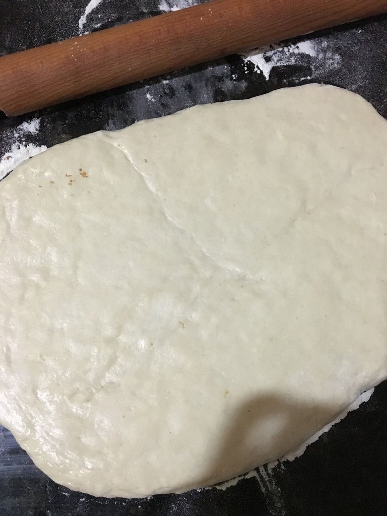 Quand la pâte et le beurre sont à la même température (encore assez froids), abaissez (étalez) la pâte, en commençant par appuyer, de l'intérieur vers l'extérieur, sur le premier quartier.