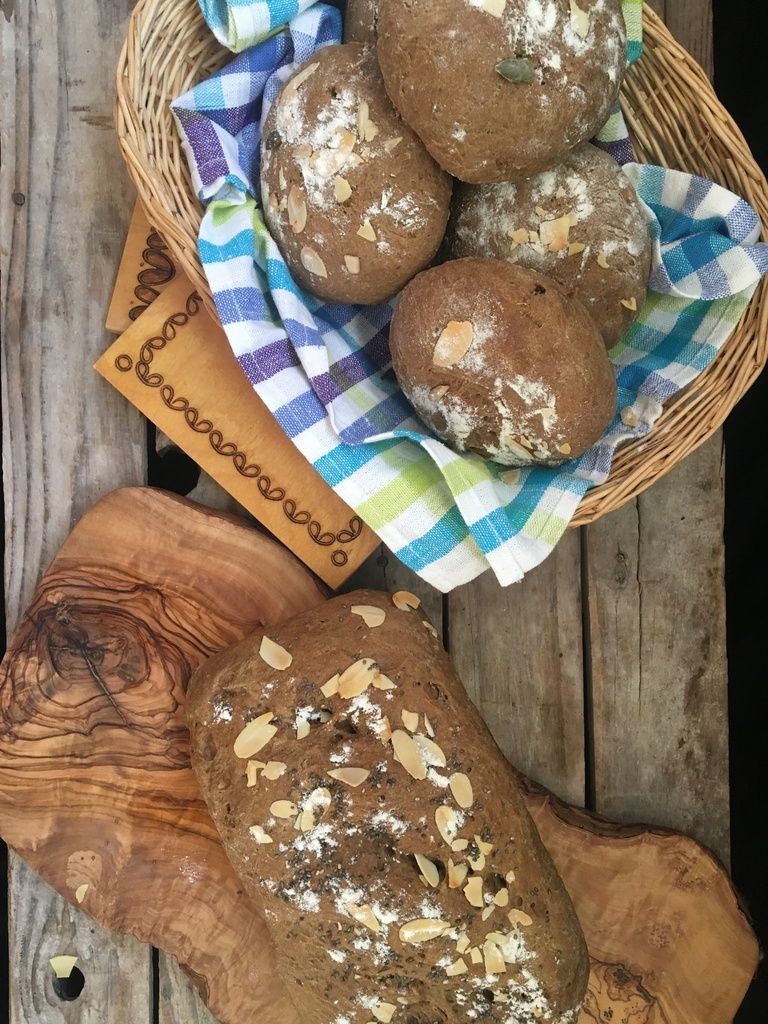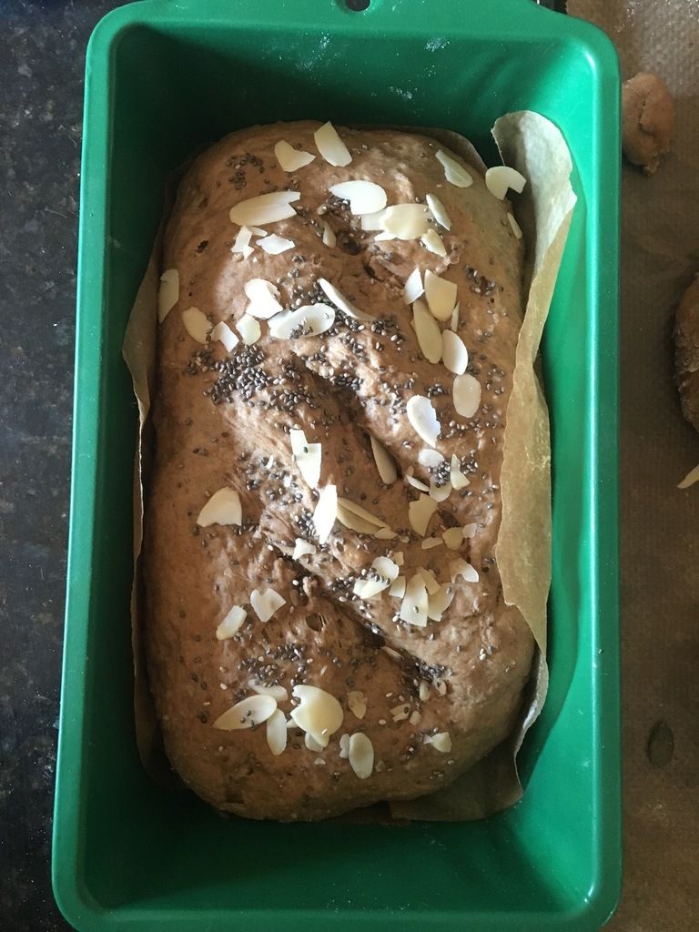 La pâte ayant levée, je fais sur le dessus plusieurs entailles avec un couteau à fines dents et saupoudre d'un peu de farine.