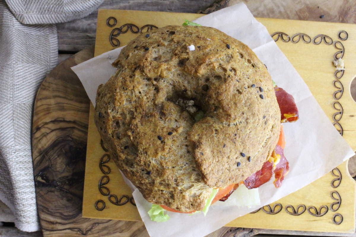 Le bagel, baguel est un petit pain en forme d'anneau, à la texture très ferme, fait d'une pâte au levain naturel, cuit brièvement dans l'eau avant d'être passé au four.