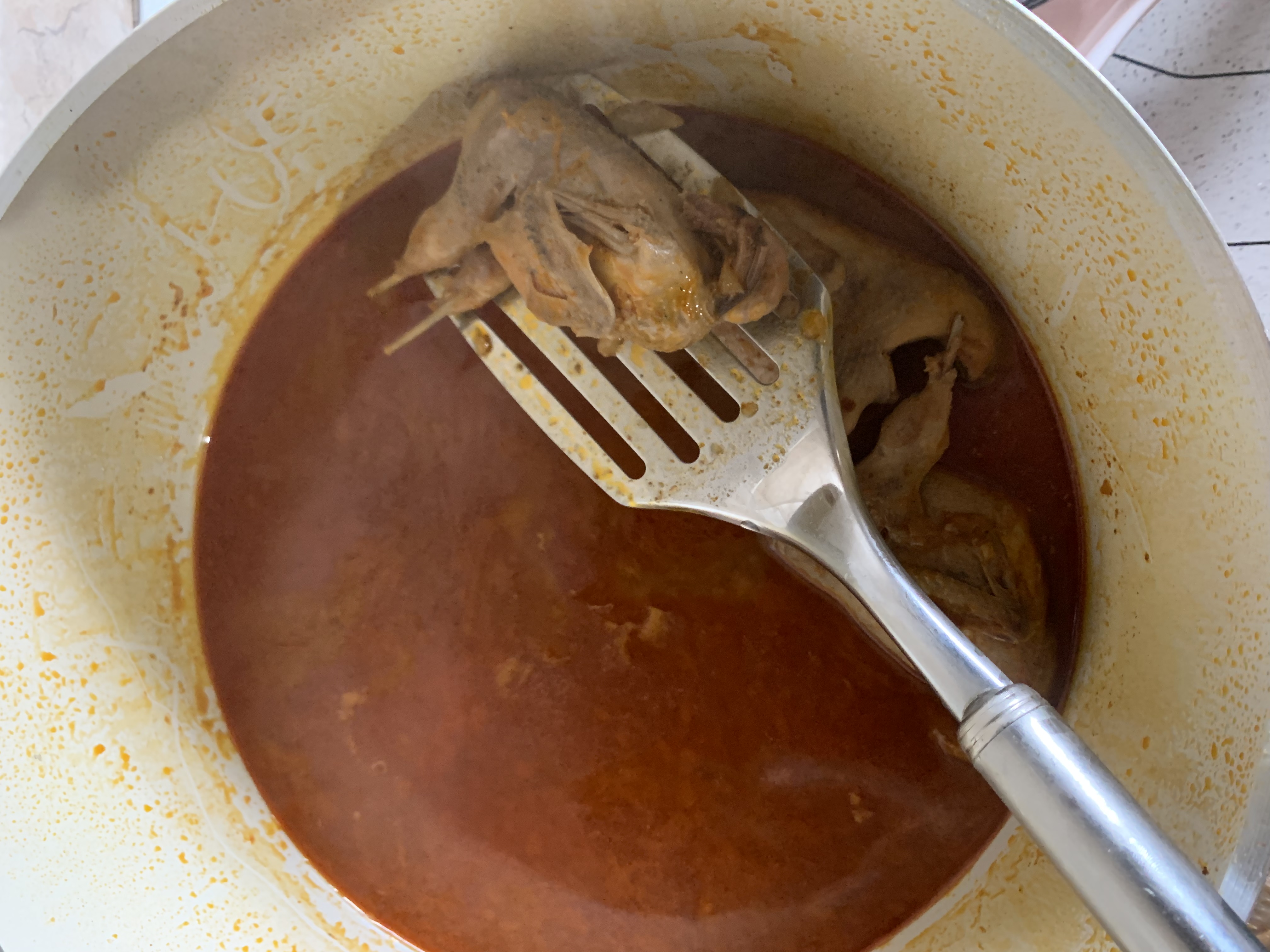 Dans une marmite, sur feu doux, faites revenir les morceaux de caille dans de l'huile , avec l'oignon râpé,
