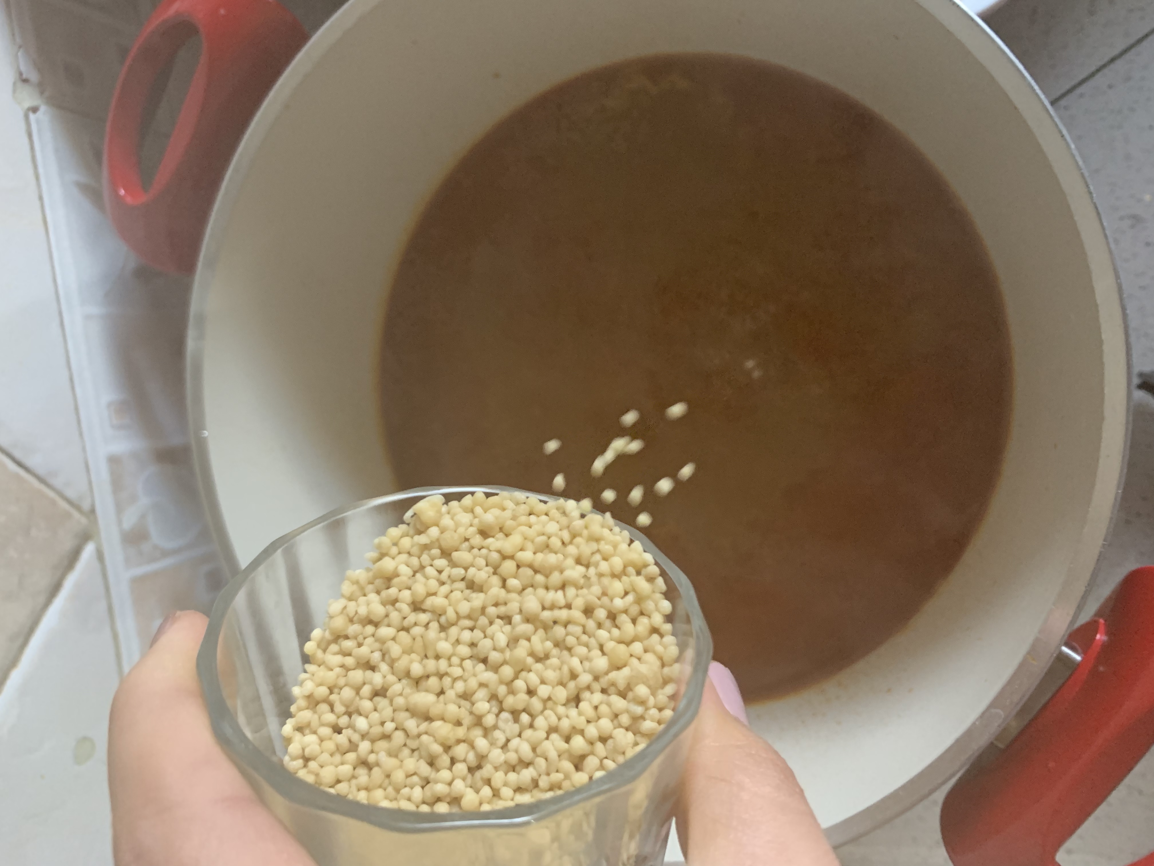 faites revenir, puis arrosez d'eau 2 à 2.5 litre.