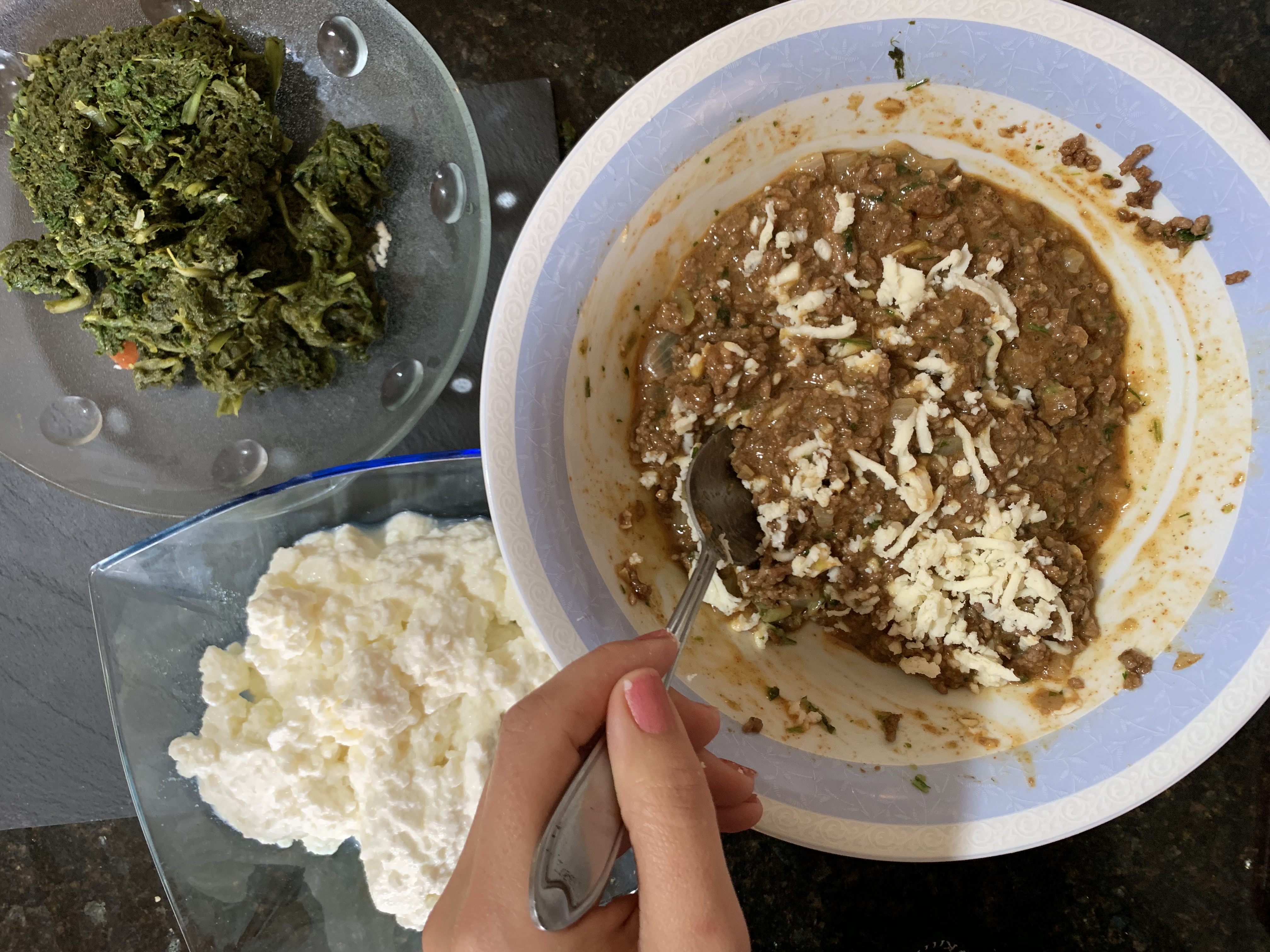 Ajouter ensuite cette farce au fromage sur la couche d'épinards et laissez cuire encore 10 minutes. (j'ai oublié la photo )