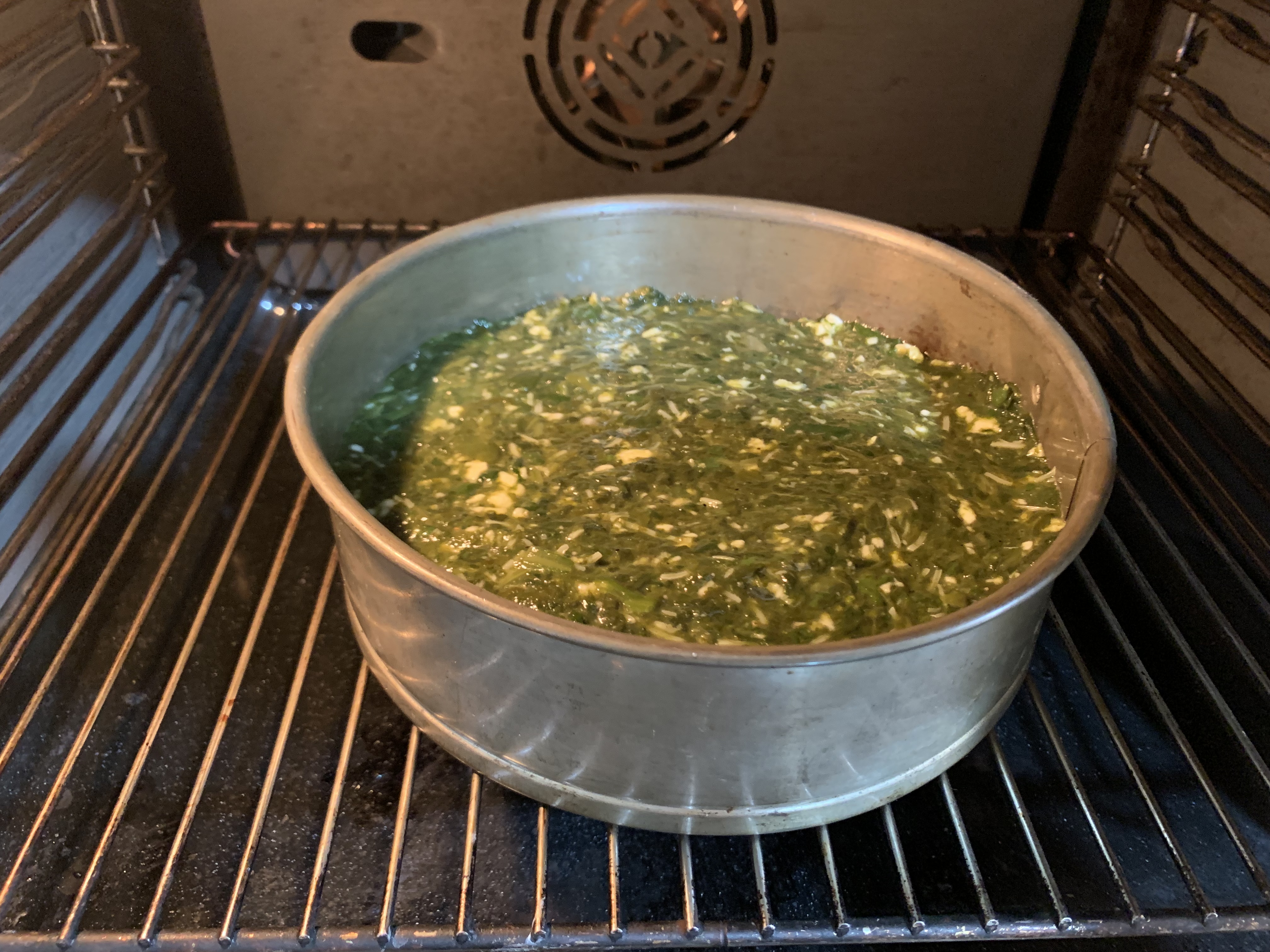 retirez du four et ajoutez la farce aux épinards, faites cuire encore pendant 5 à 10 minutes.