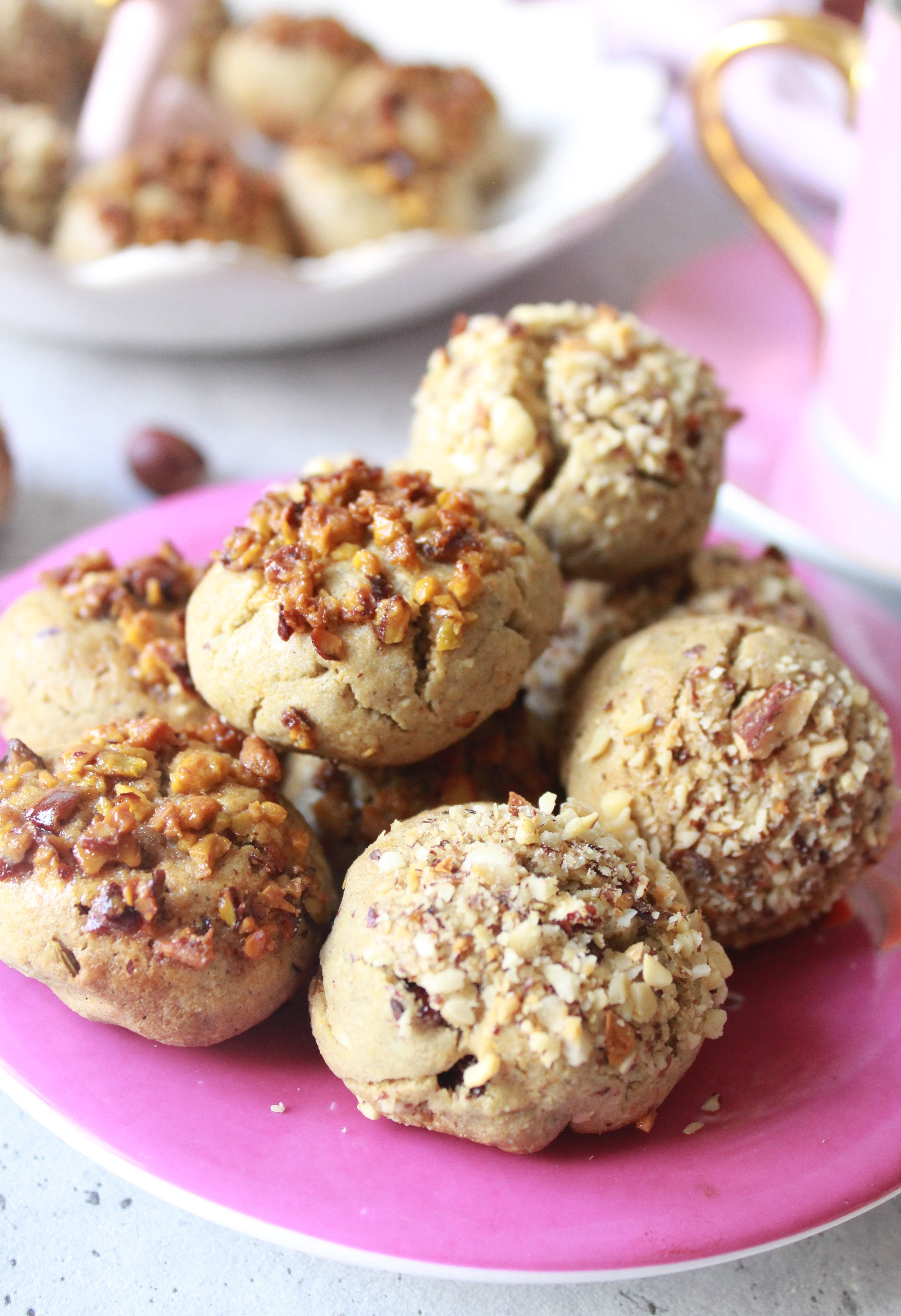 Étaler les boules et plonger la surface dans un blanc d’œuf puis dans les noisettes concassées . Enfourner dans un four préchauffė à 180 pendant 20 minutes