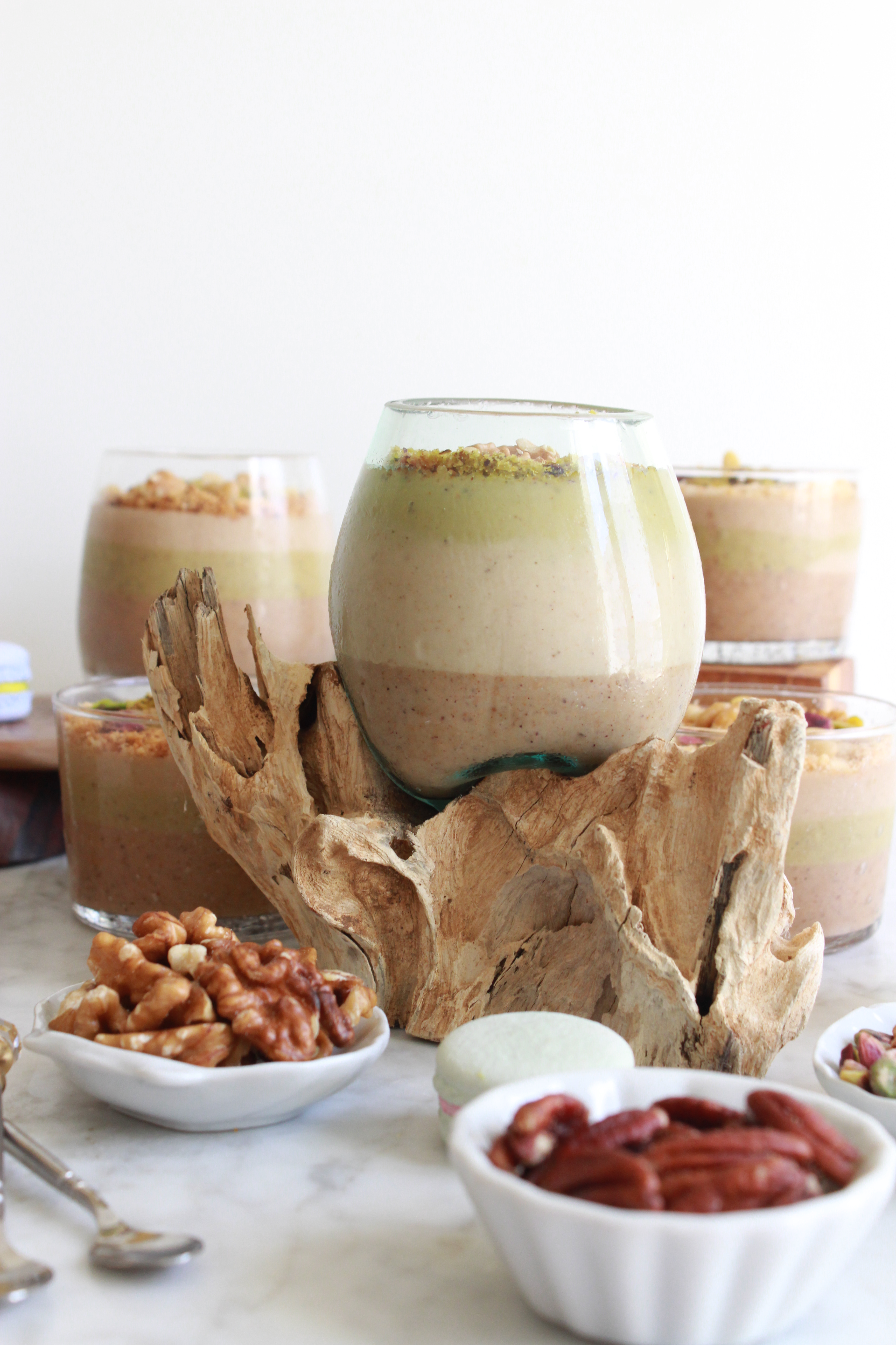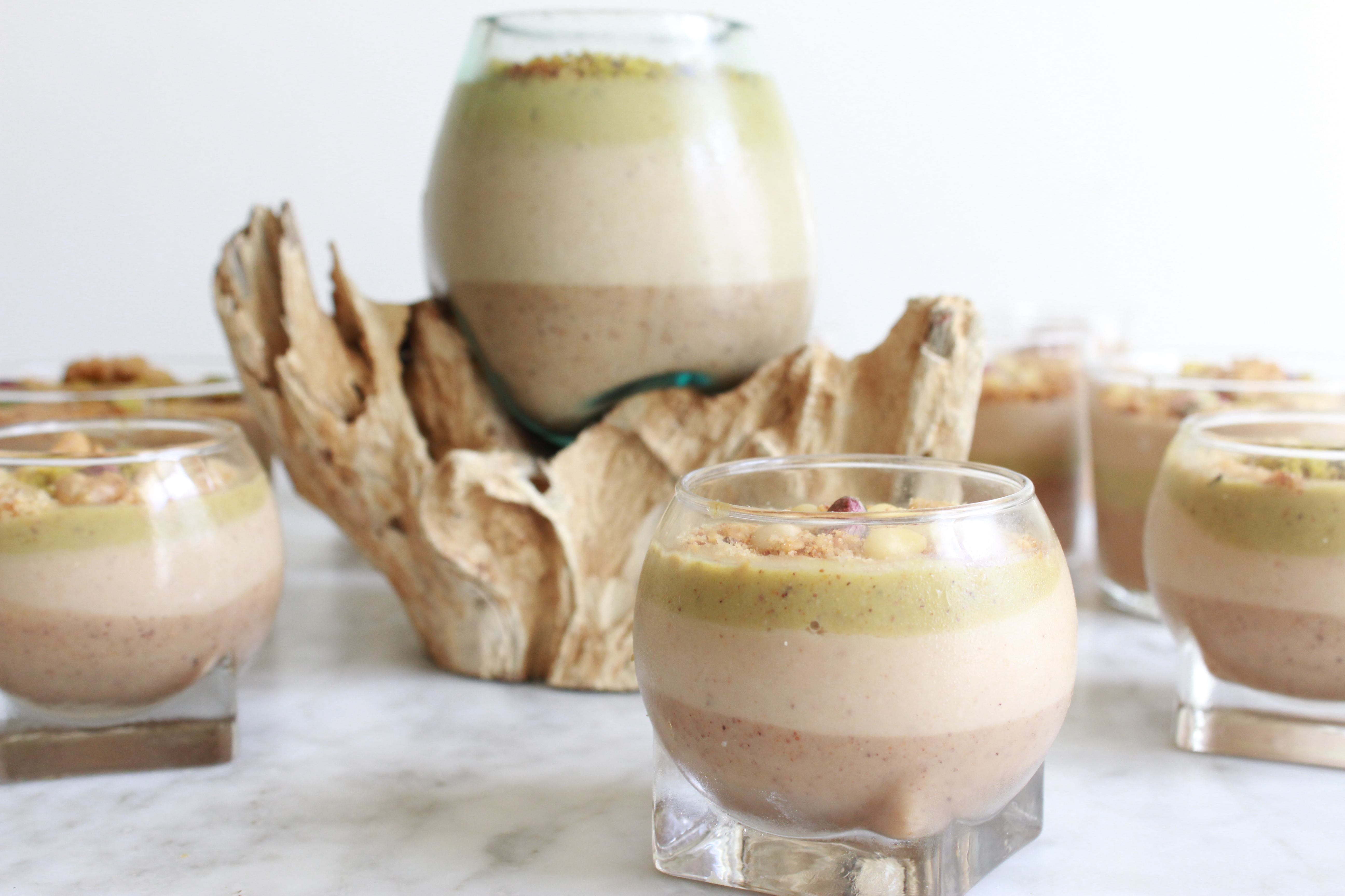 Versez la assida pistache sur la couche d’assida noisette laisser refroidir