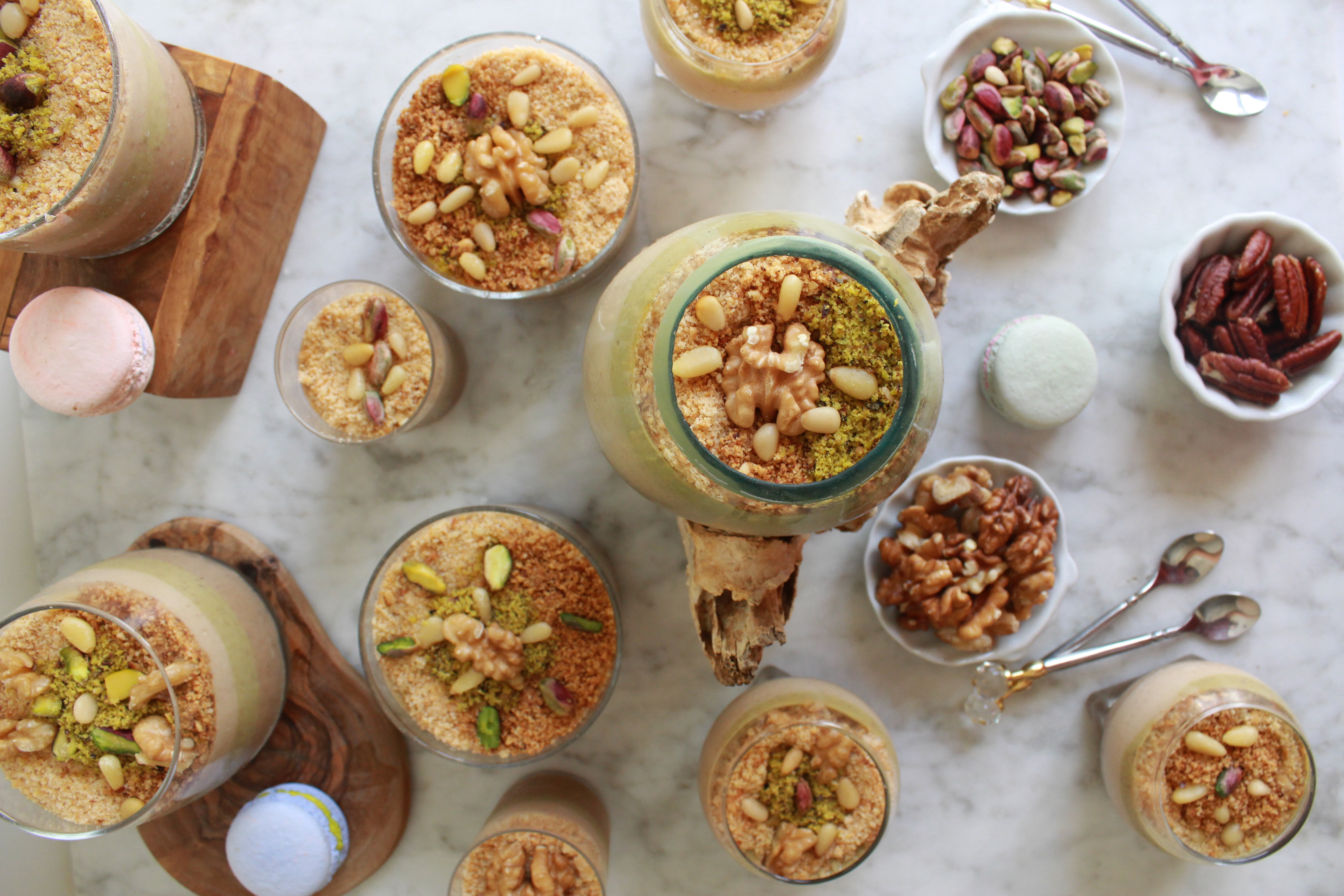 Décorer le dessus de pistaches ou amandes concassés ou de pignon, je vous laisse le choix chacun son inspiration