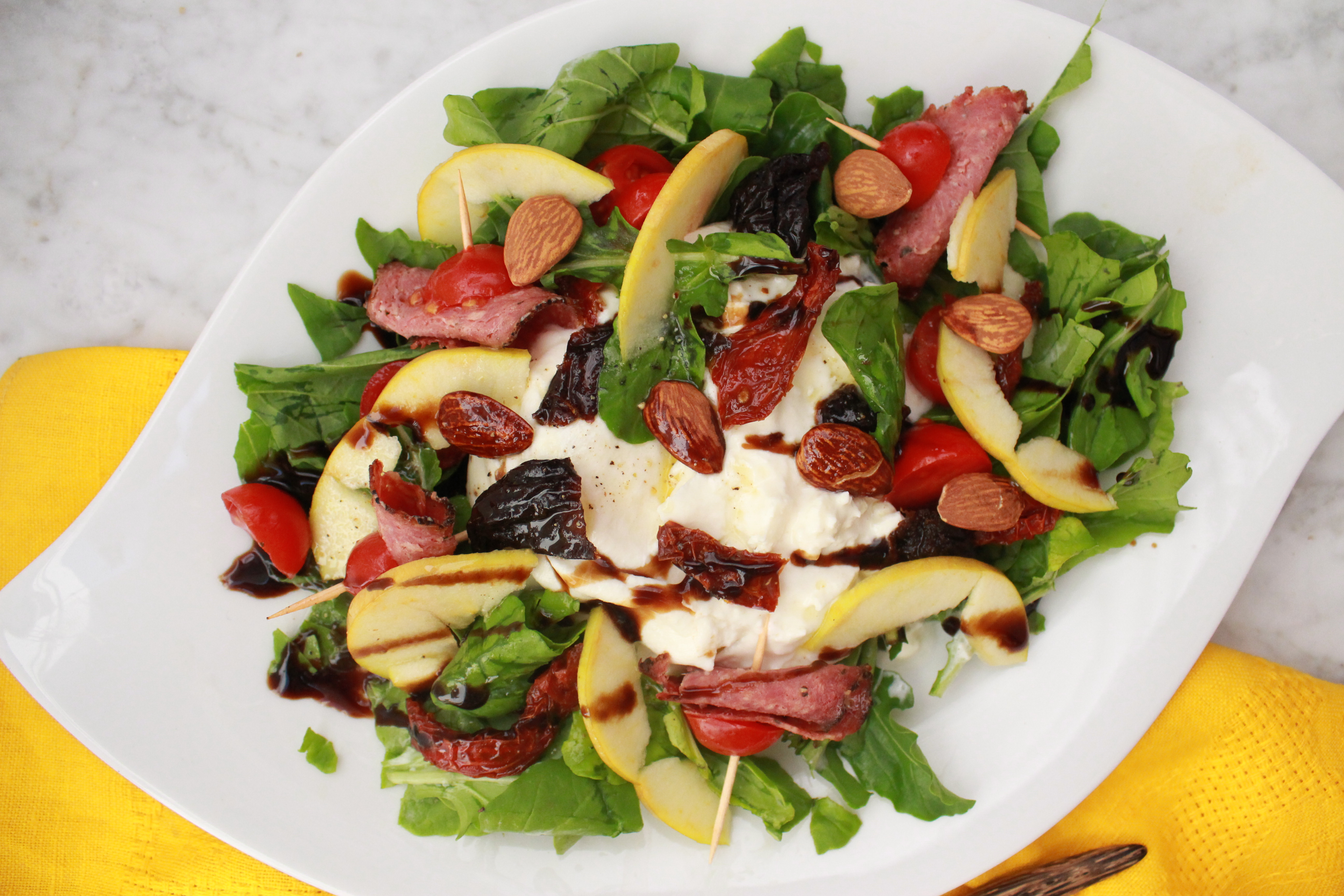 17 August 2020 Salade et soupe SALADE AU BRESOALA ET BURRATA Twitter Ingrédient : tomate séché bresaola tomate cerise amande roquette pomme burrata citron huile d'olive et vinaigre blasamic sel et poivre . Previous Next