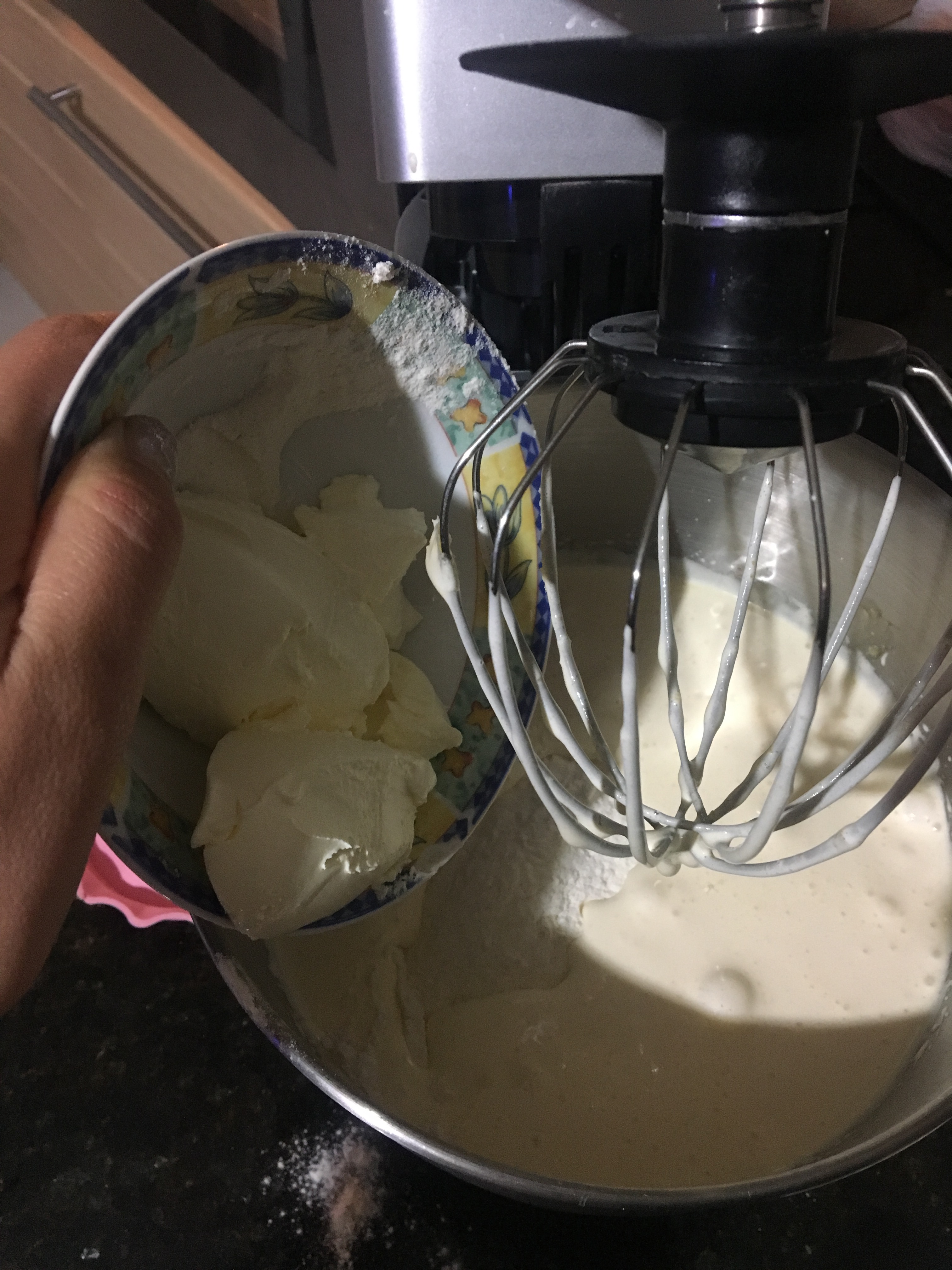 Ajoutez le beurre à nouveau avec un mélange ou un fouet jusqu'à consistance lisse. laissez refroidir.