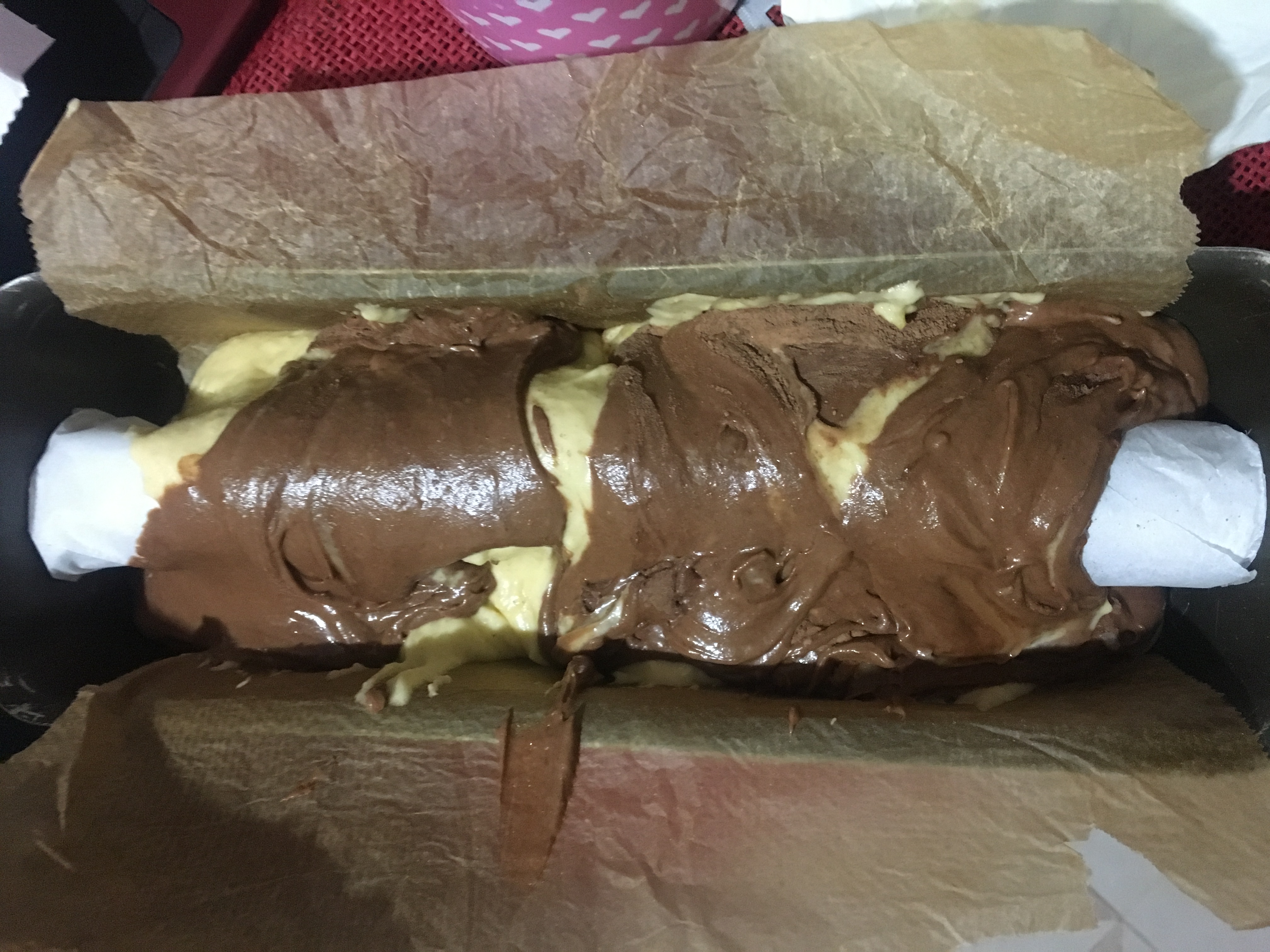 Appareil à gâteau au cacao foncé ajouter la poudre 30 gr feuilles de cacao et mélanger bien 2 appareils 10 gr
