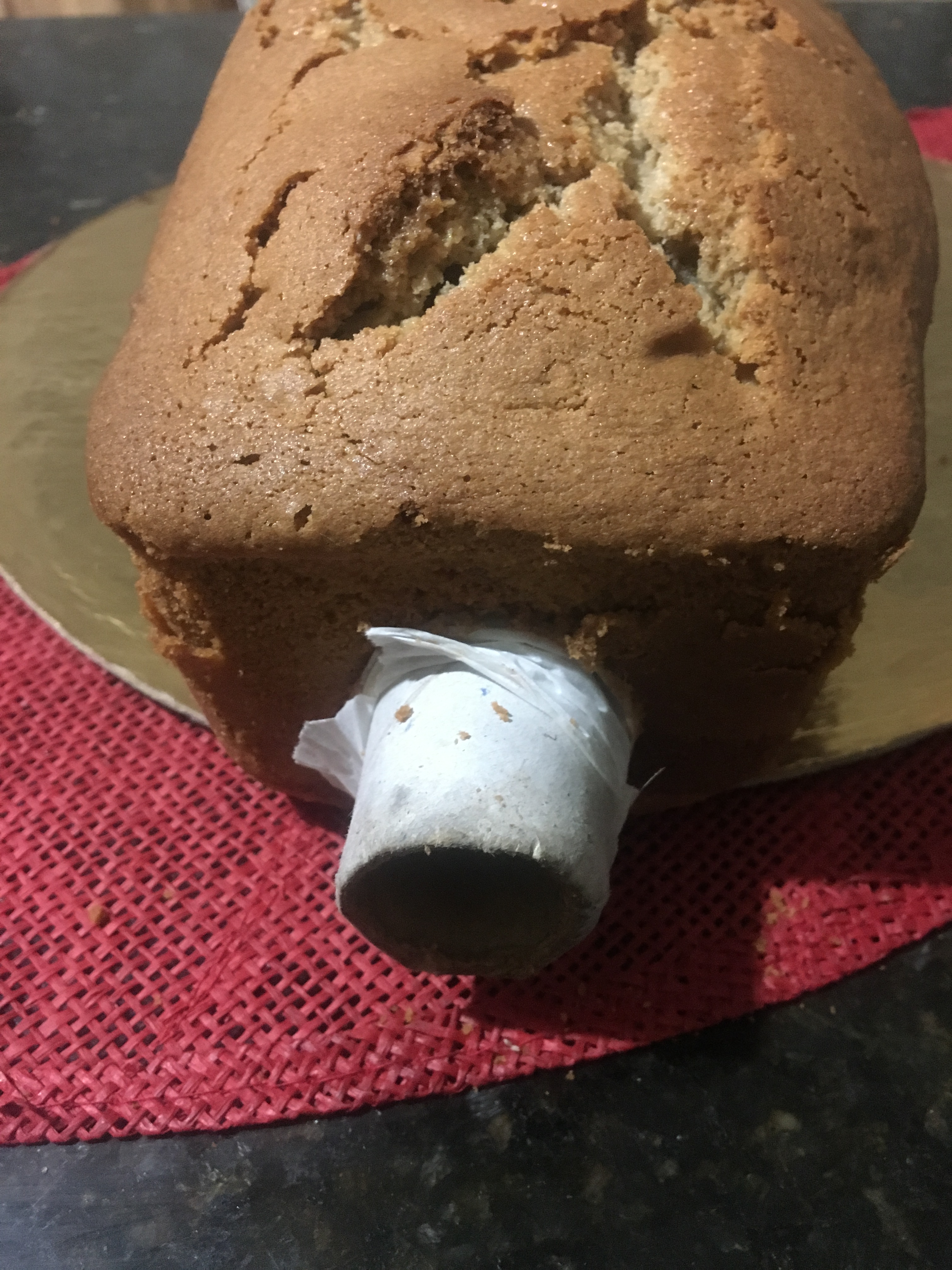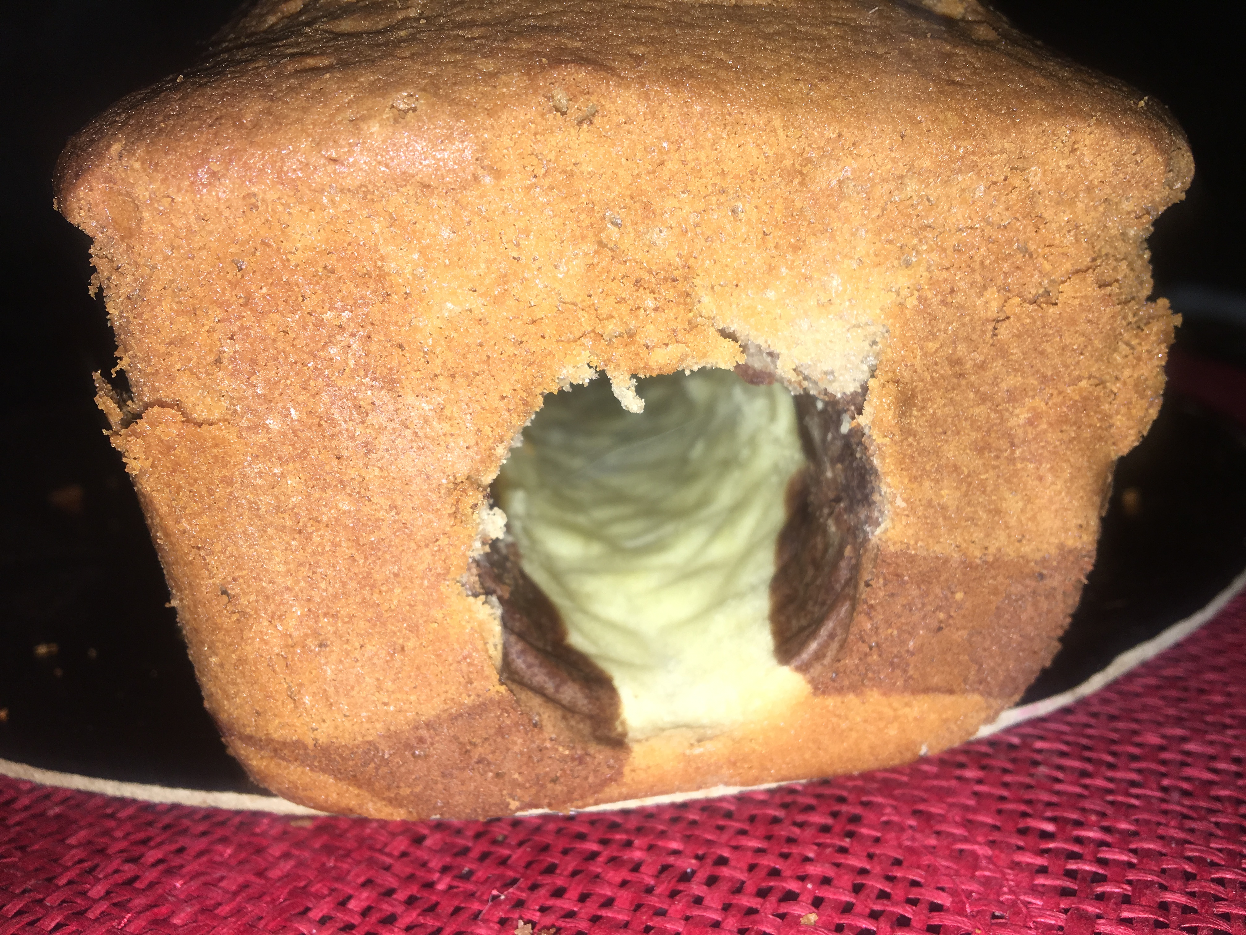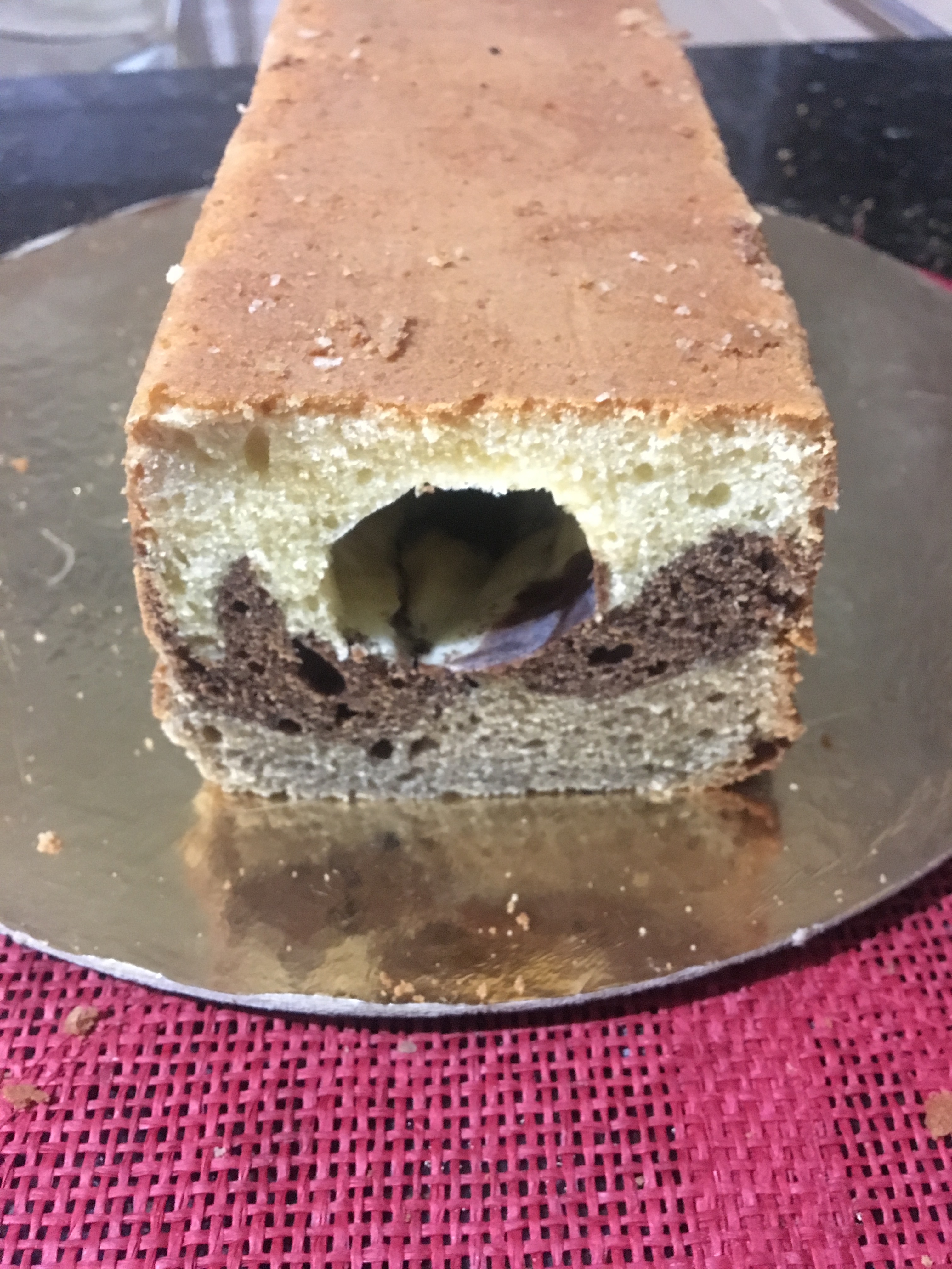 Mon gâteau est tout doré. Je tire le tube du gâteau.