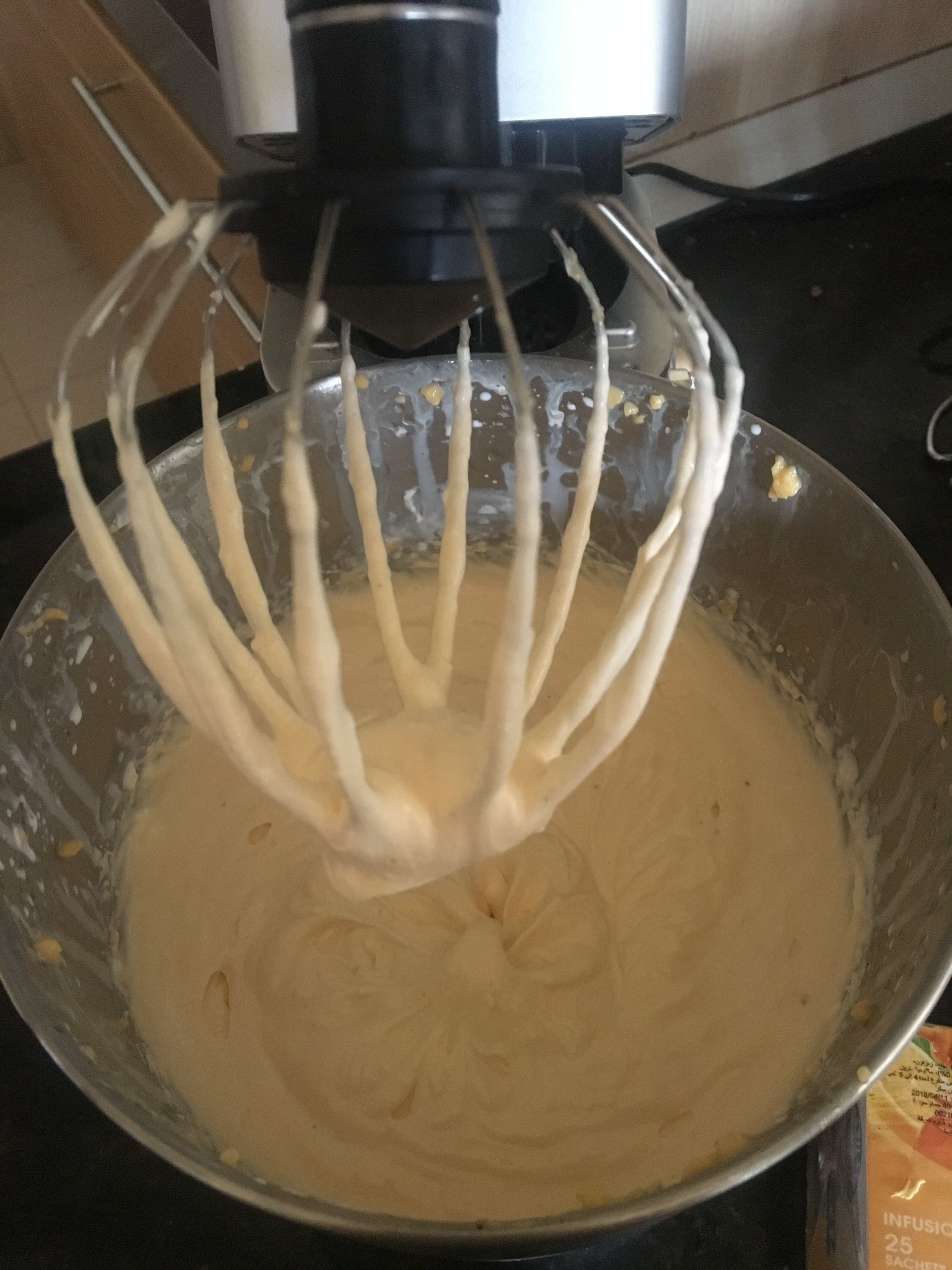 Puis le reste de la crème chantilly. Continuez à travailler la crème : il faudra quelques instants pour obtenir un résultat lisse, gonflé et crémeux . La crème au mascarpone est prête