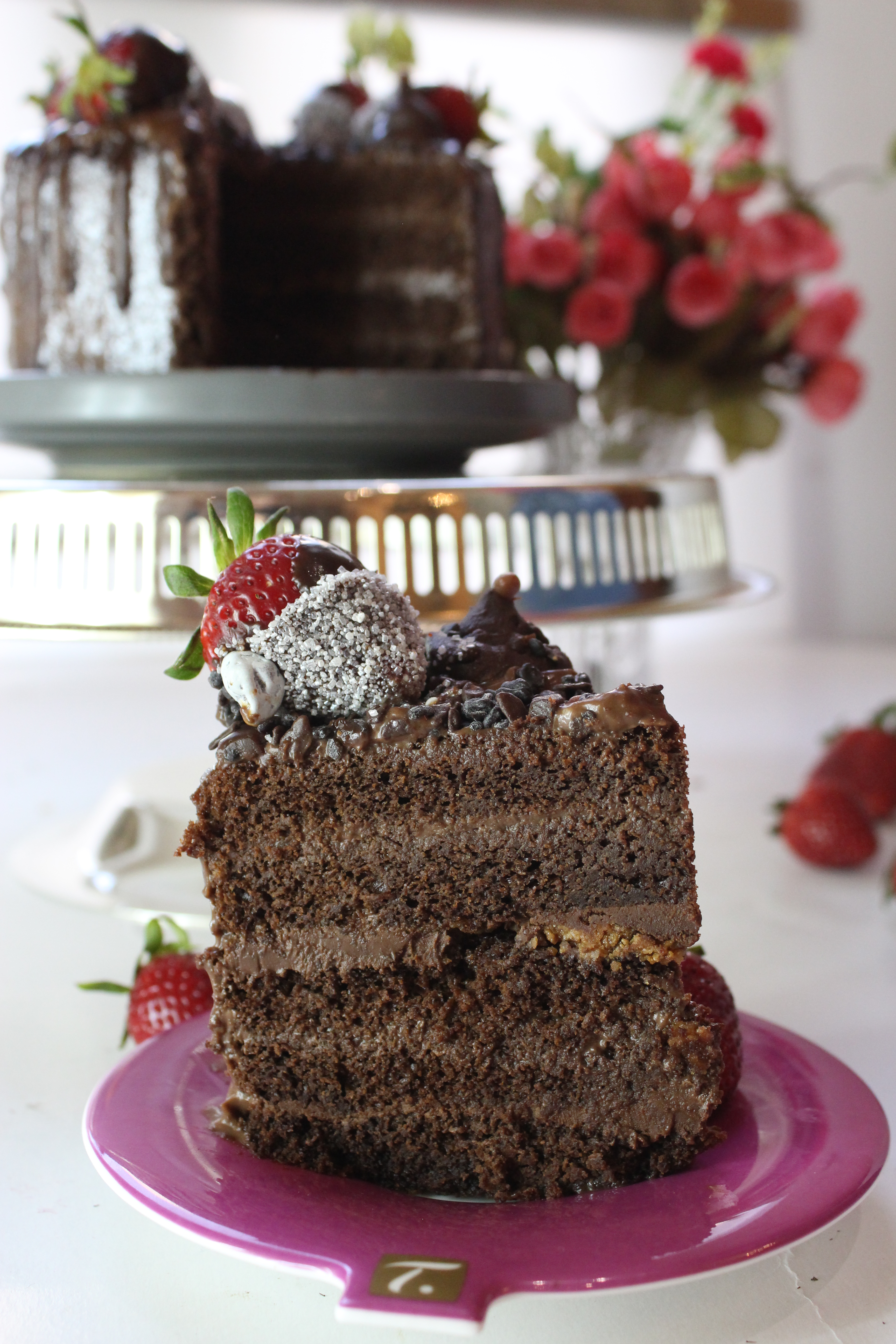 3 Répétez cette étape avec une seconde couche de gâteau et alternez avec la ganache chocolat entre les couches j'ai mis du craquelin chocolat acheté au commerce terminez en posant la dernière couche.