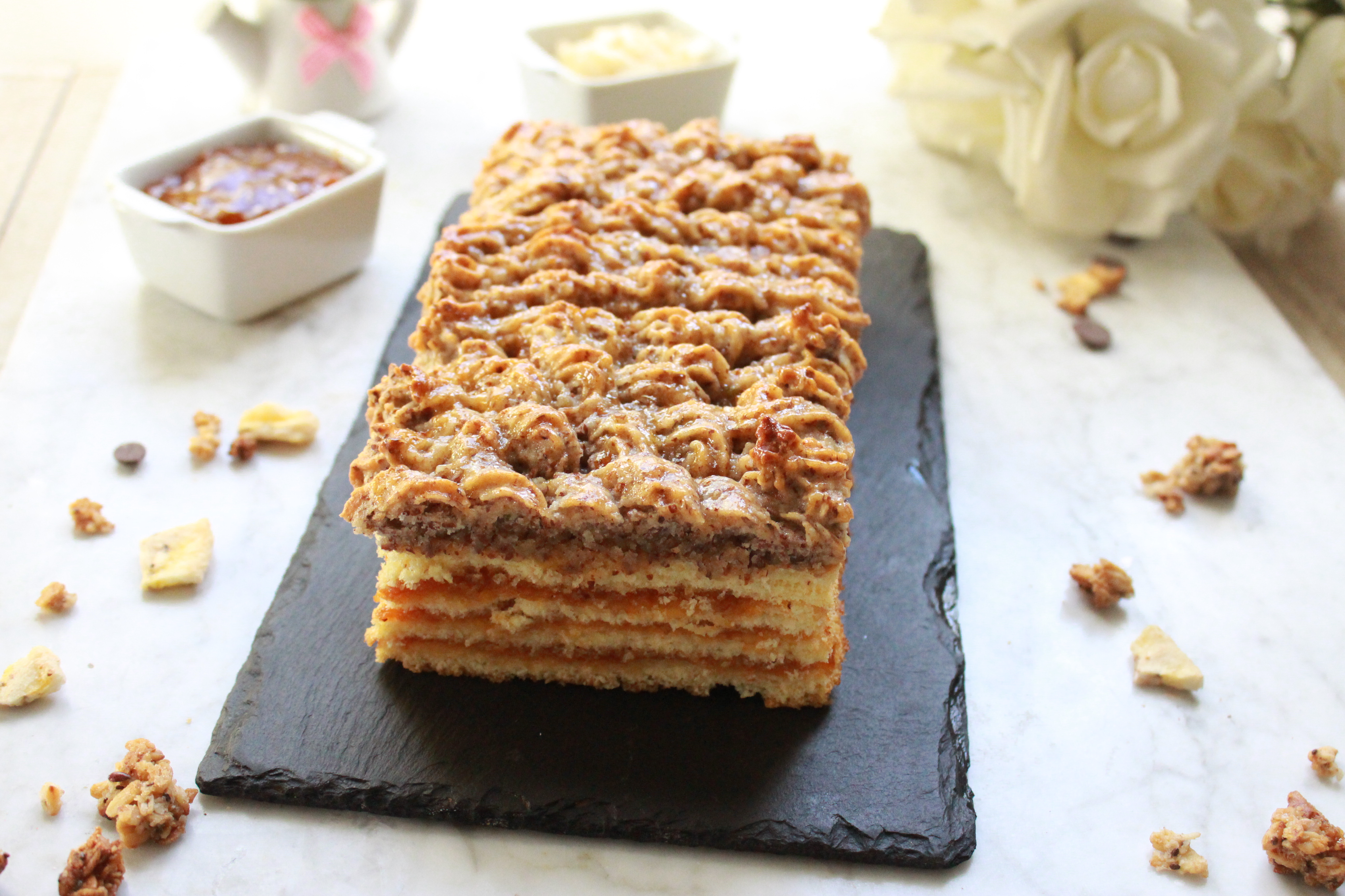 - Badigeonner avec le sirop et étaler la confiture d’abricot.