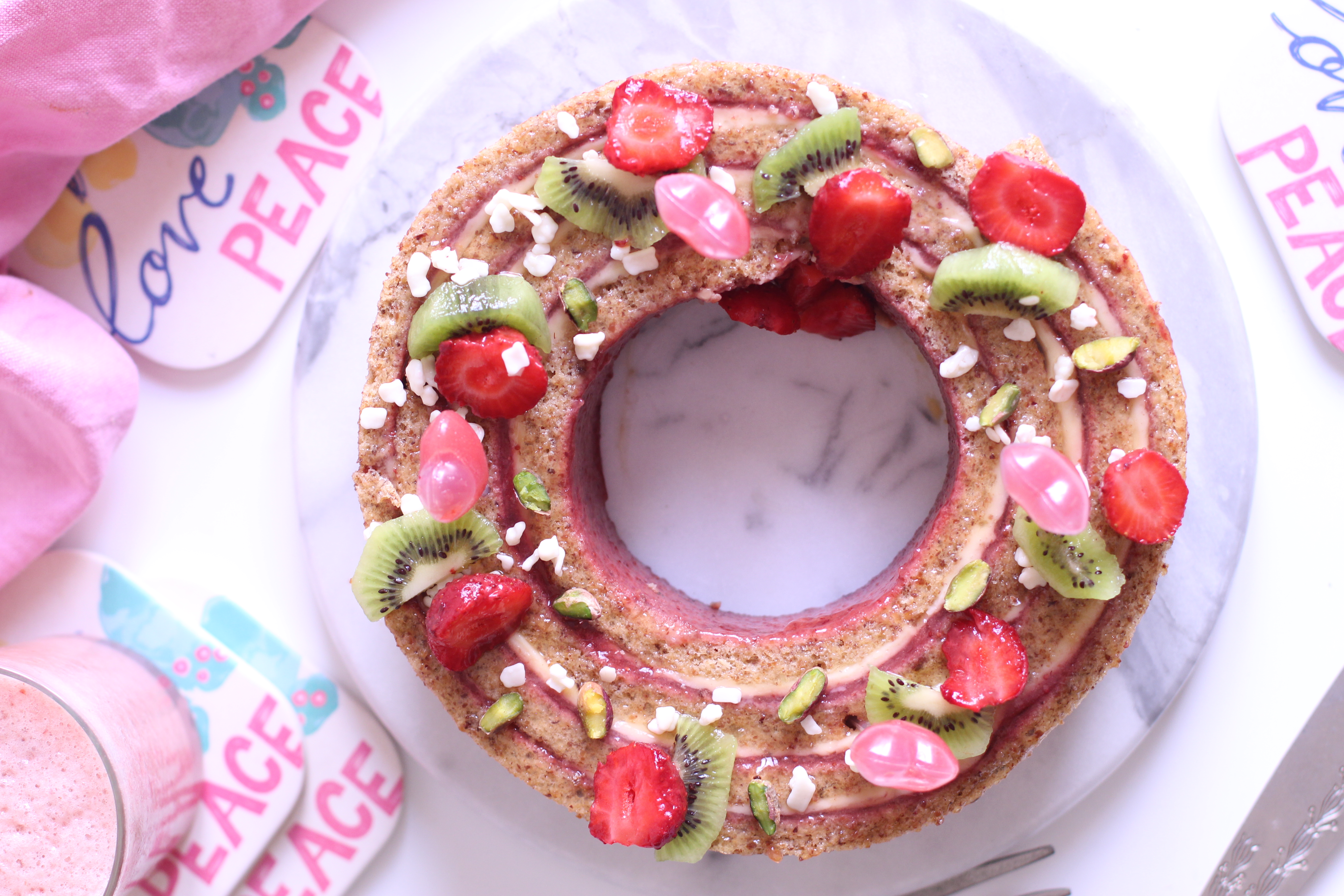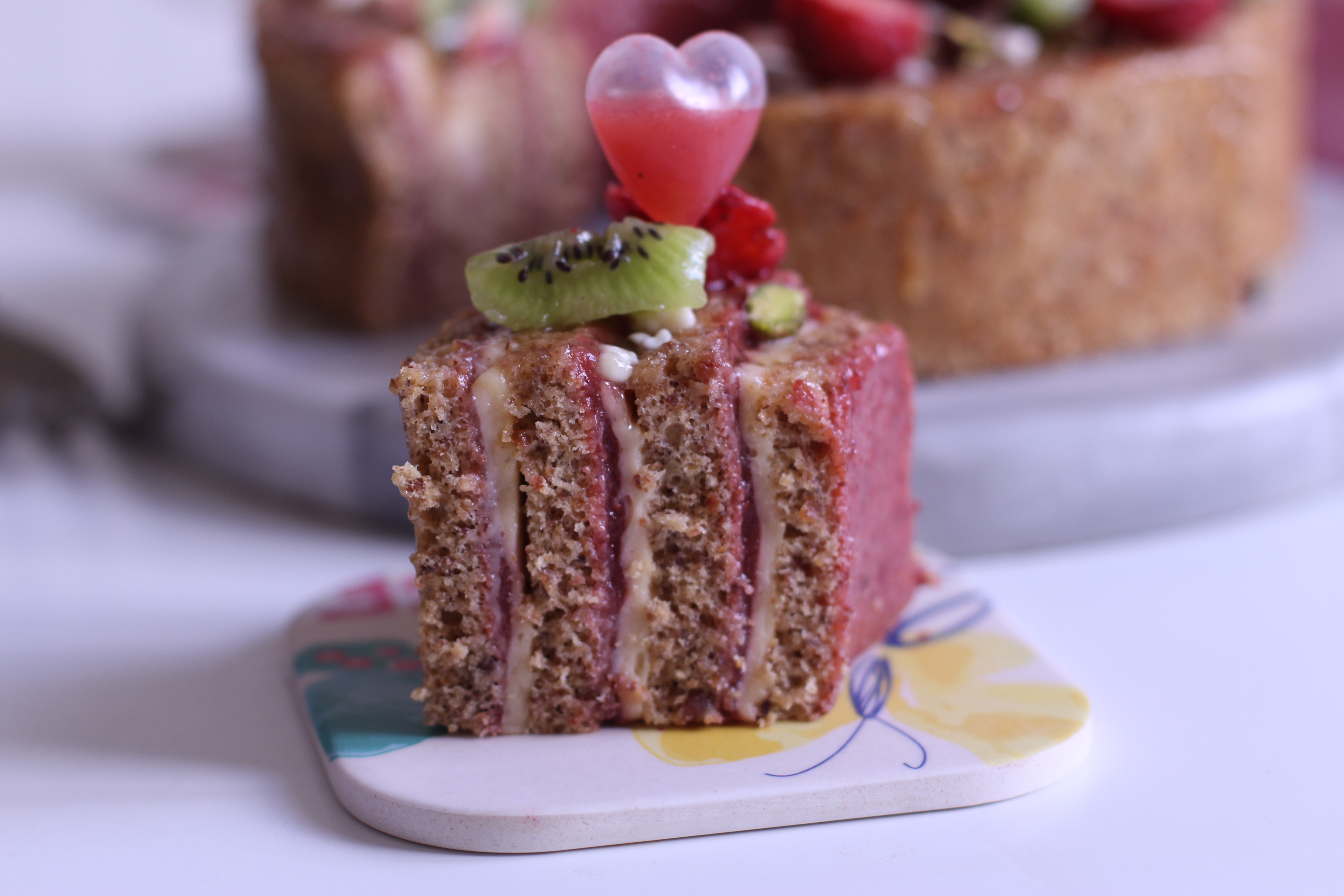 Nous conservons notre gateau au réfrigérateur, jusqu'au moment de la consommer. Ainsi, nous décorons le gâteau avec des fraises et des fruits que vous avez On laisse à température ambiante quelques minutes avant de servir .