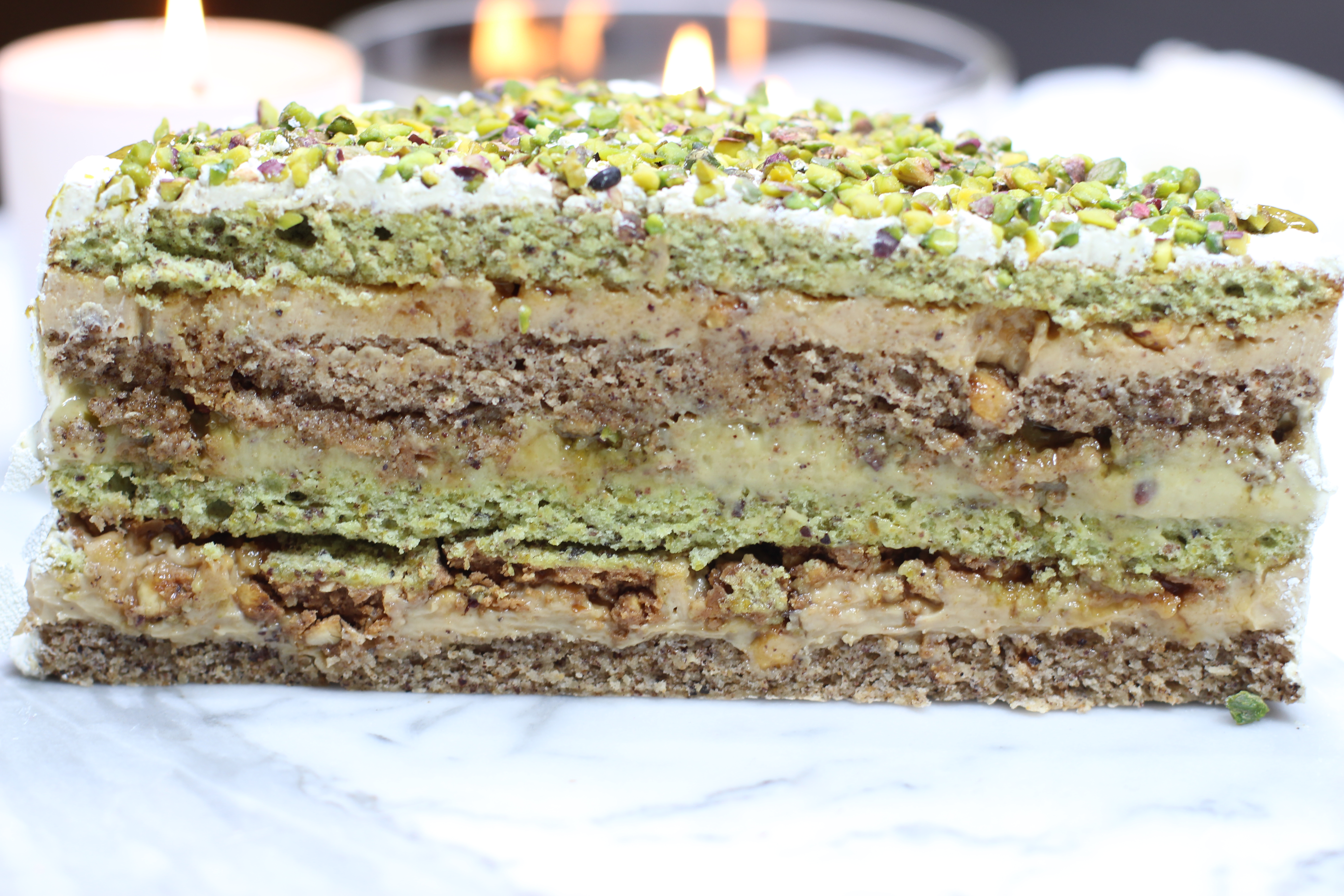 C'est la première fois que je fais un gâteau russe aux pistaches, et aux noisettes au même temps
