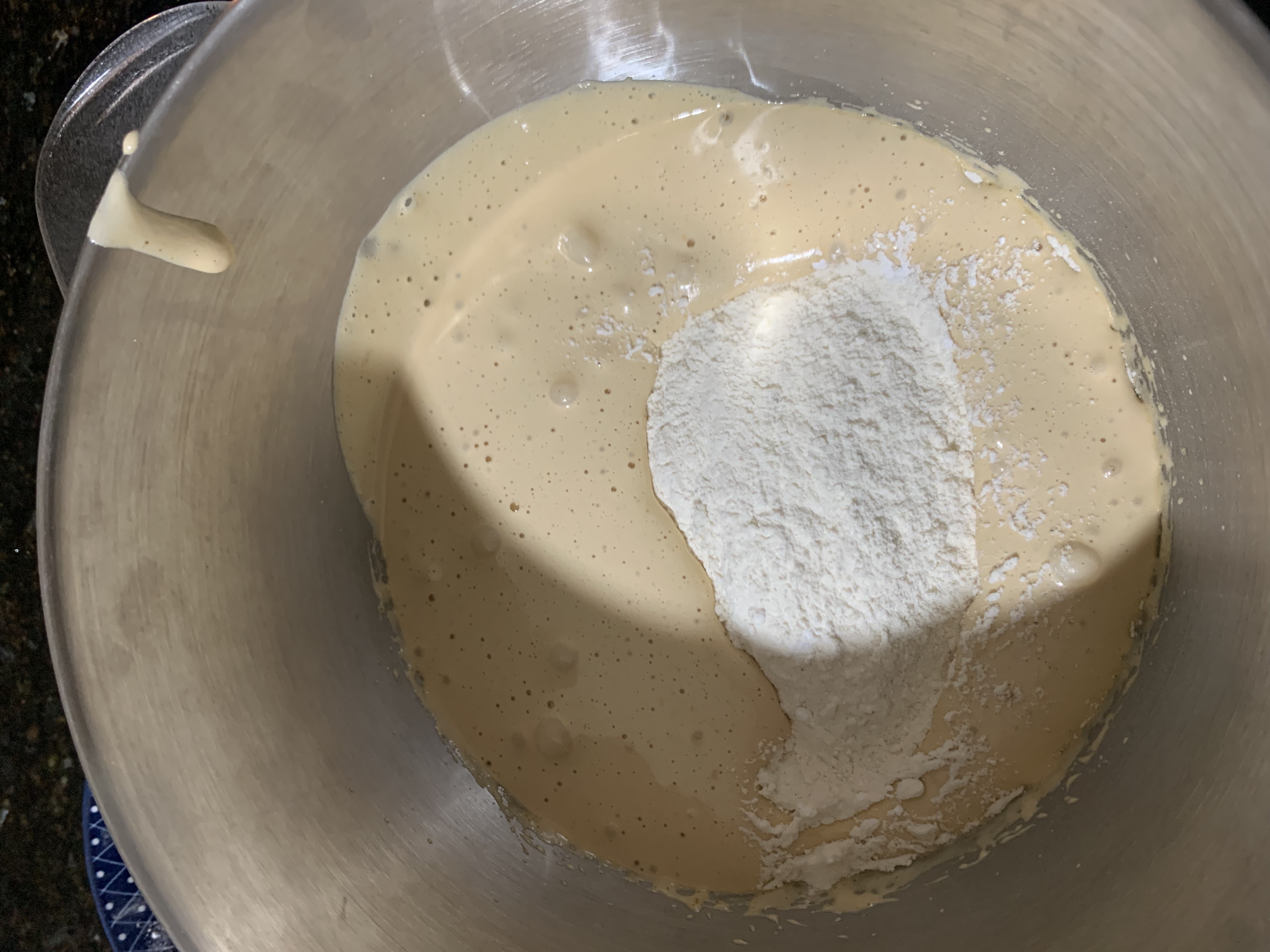 tamiser la farine et la levure sur le mélange sucre oeufs battus