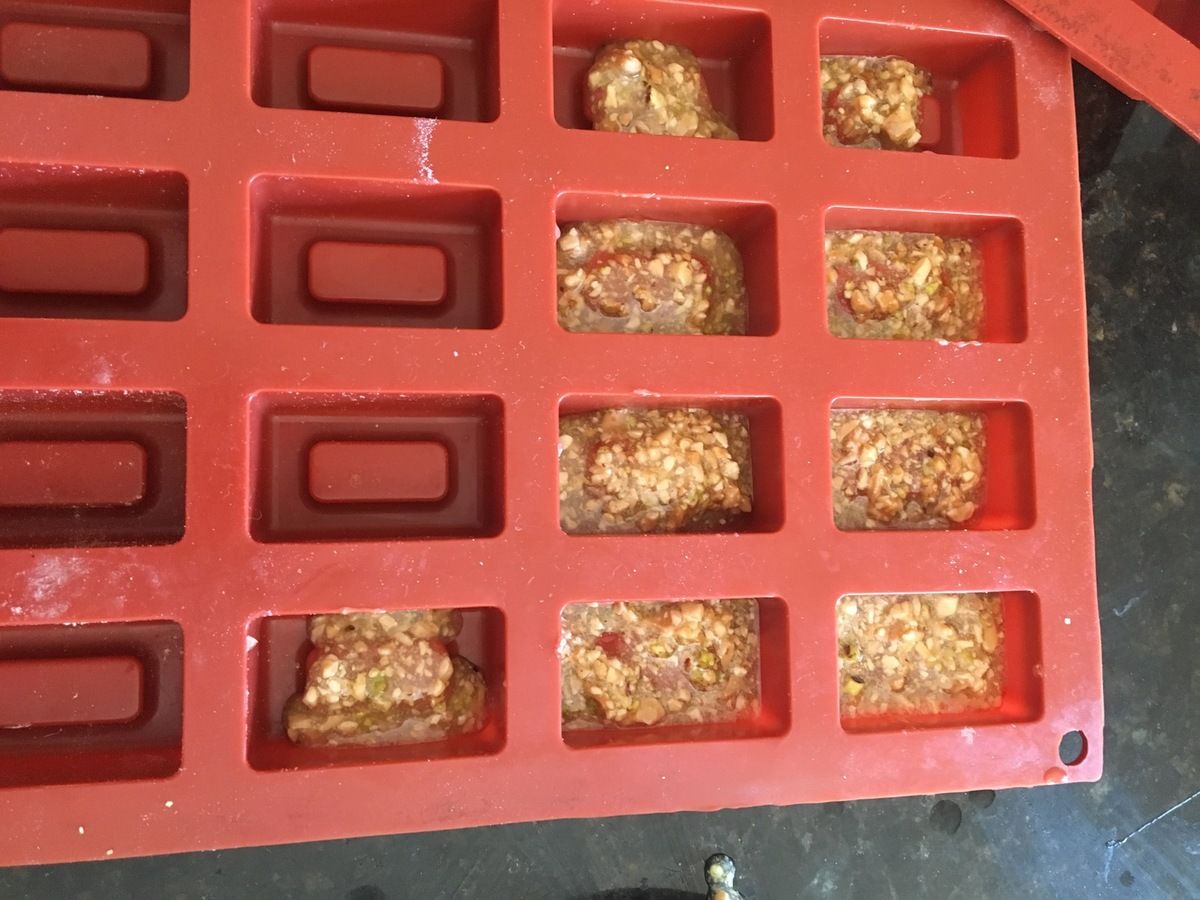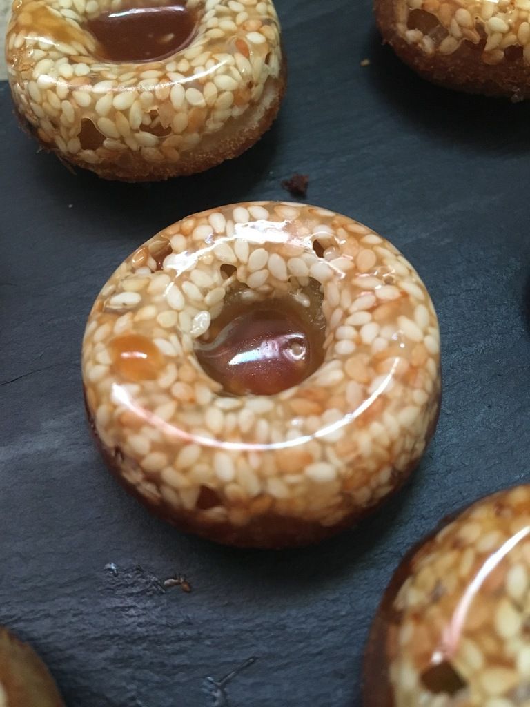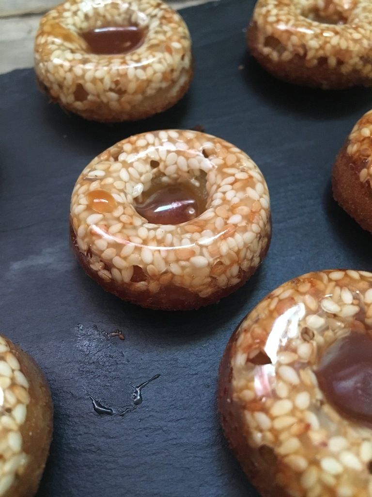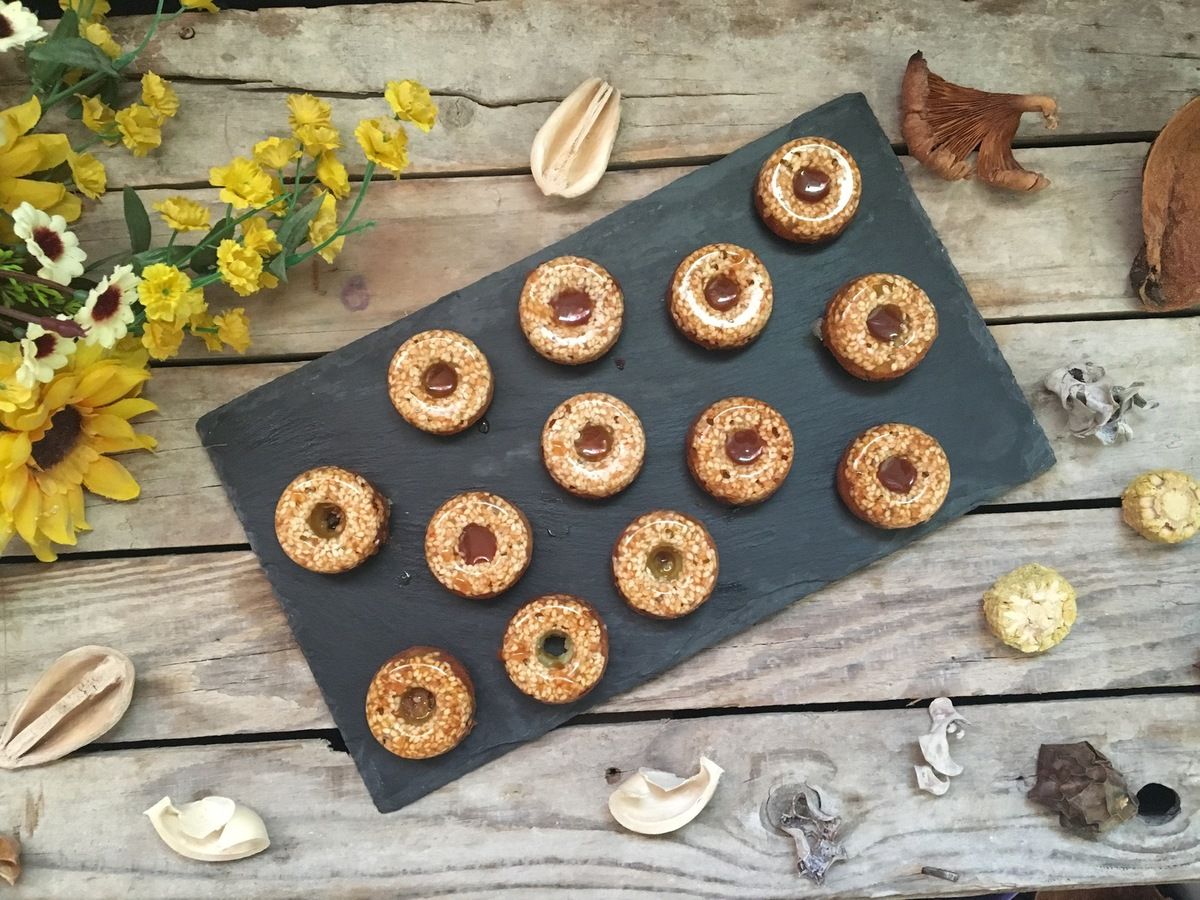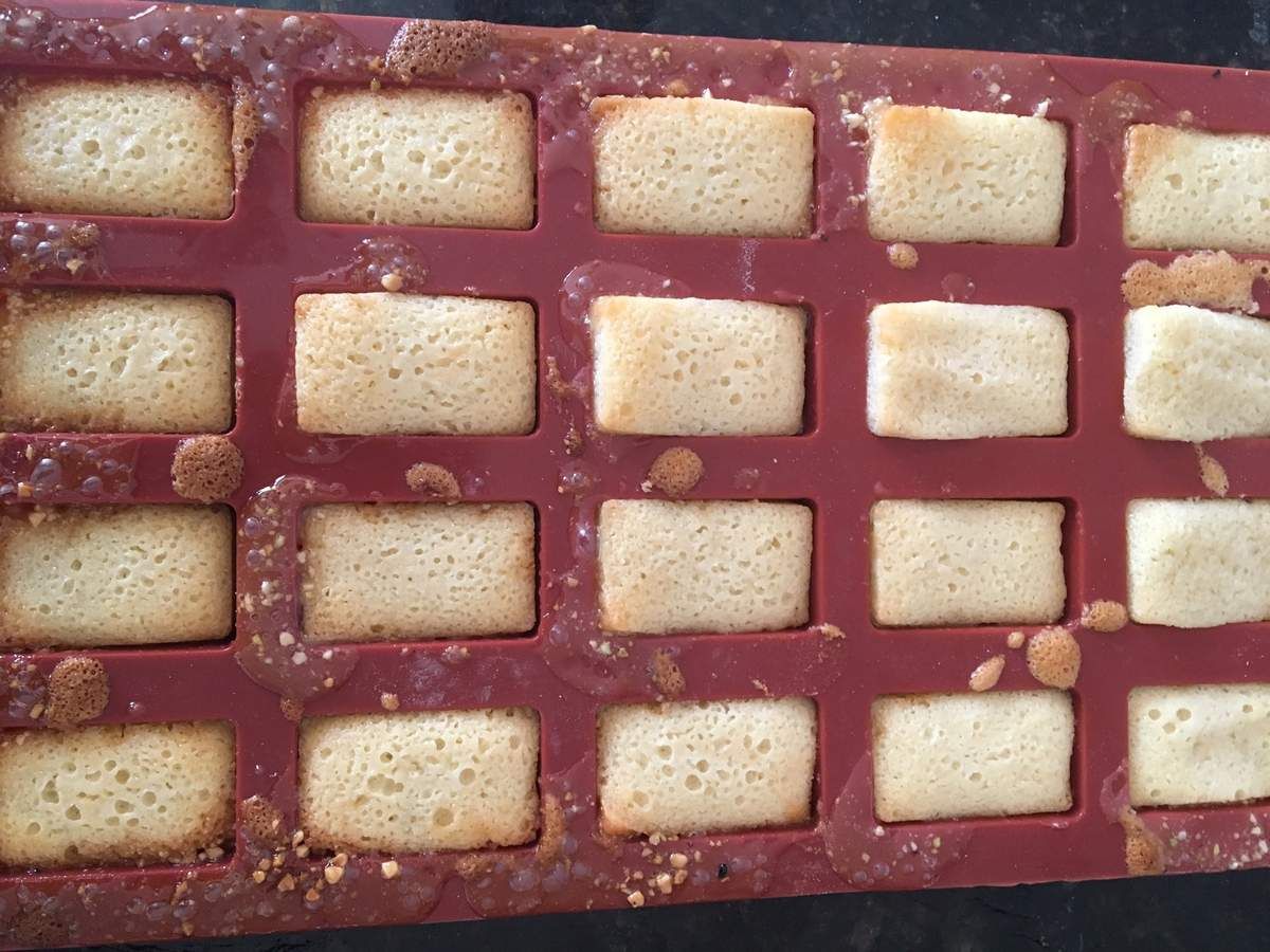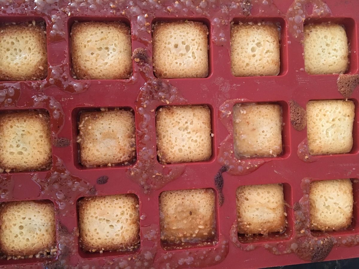 Cuire 5 minutes Le caramel va s’étendre sur les empreinte a ce moment la faire sortir les moules en silicone et verser le mélange des financier