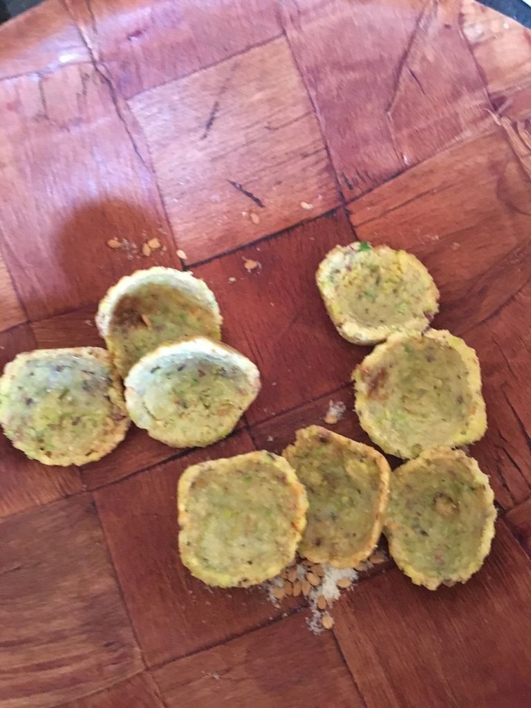 - A la sortie du four appuyer avec le dos d’une cuillère ou n’importe quel support au milieu pour former une petite empreinte qui accueillera du Nutella (mélangé ou non à la poudre de noisette) ou bien une ganache au chocolat et praliné.ou bien un caramel