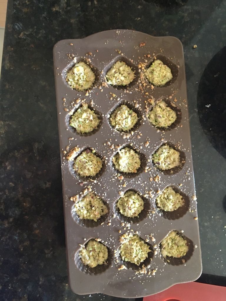 - Mélanger bien puis remplir un moule en silicone à empreintes pour mignardises.