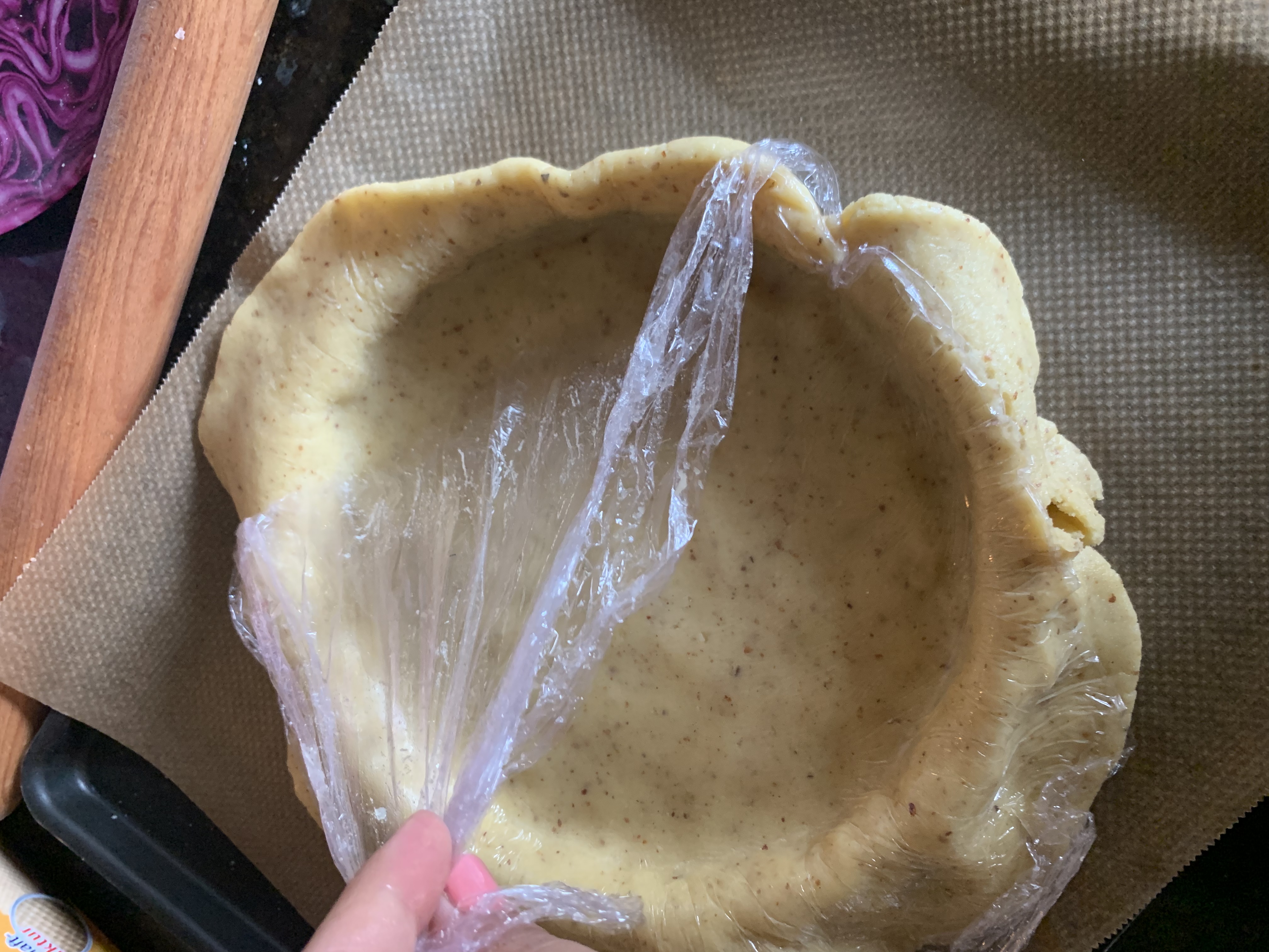 Farinez votre plan de travail et étalez votre pâte. Foncez votre cercle à tarte.